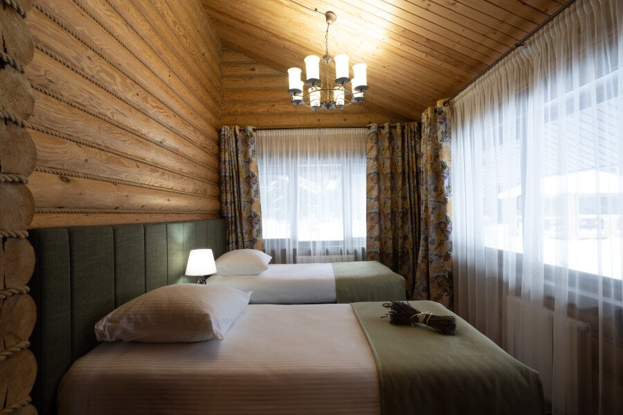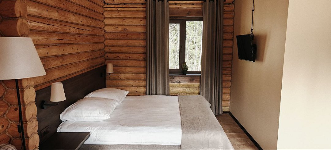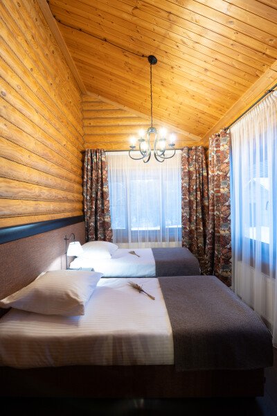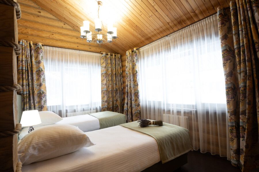Одна двуспальная кровать, одна диван-кроватьКоттедж ВИП №1