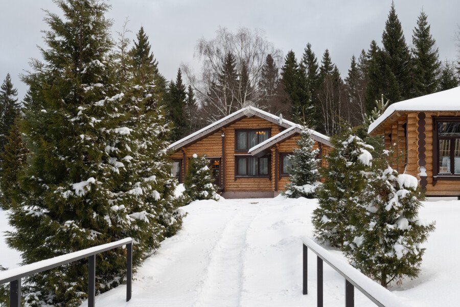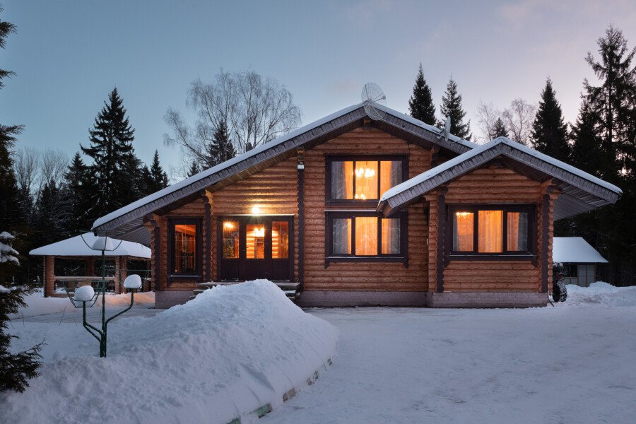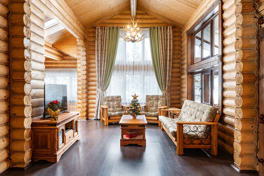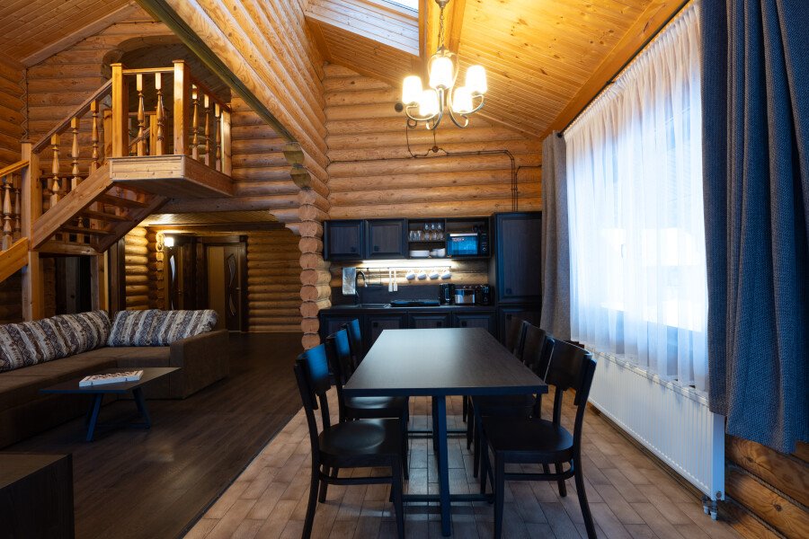 Бревенчатый коттедж с панорамными окнами и величественным видом на лес прекрасно подойдет для семей с детьми или компании друзей до 11 человек.