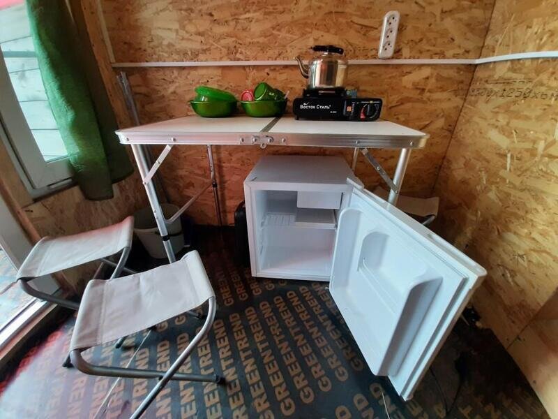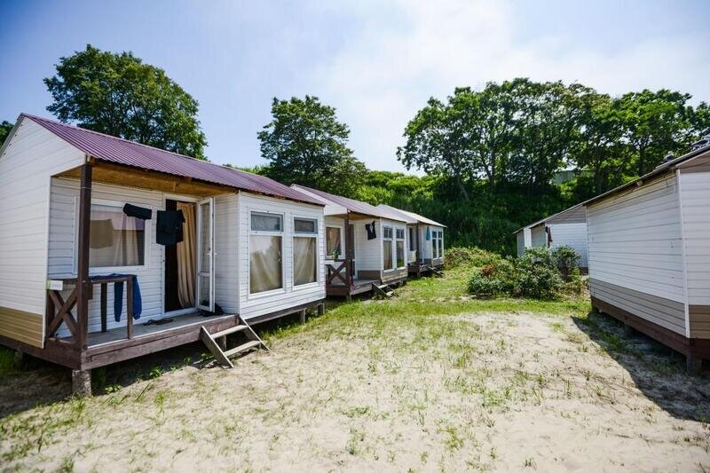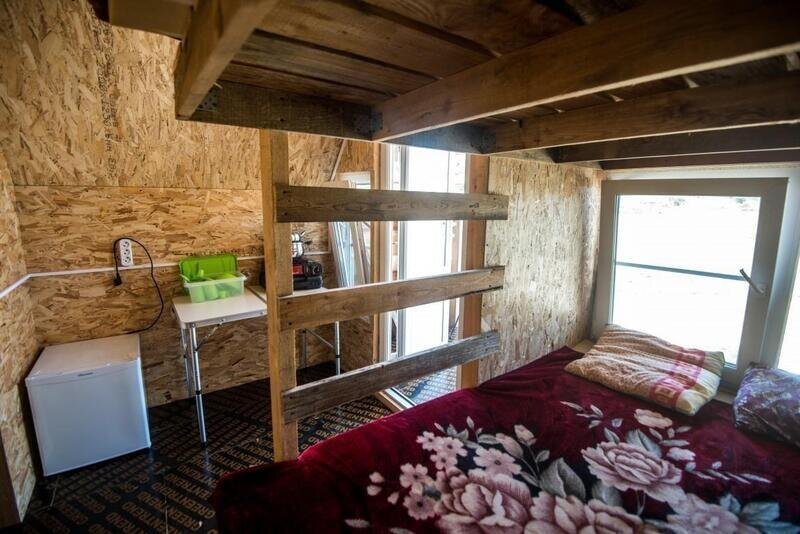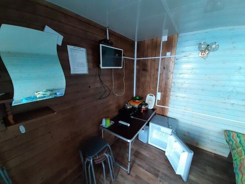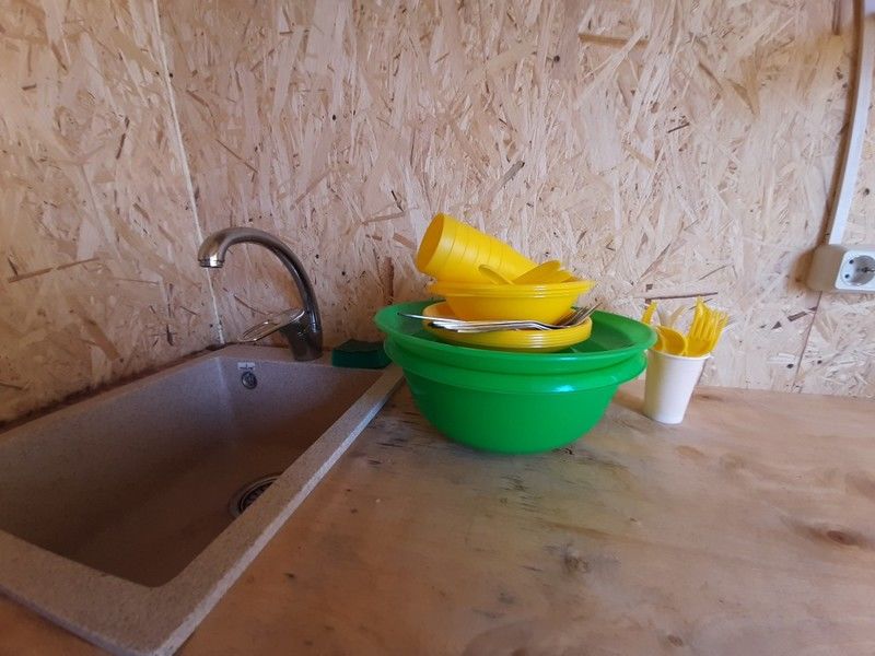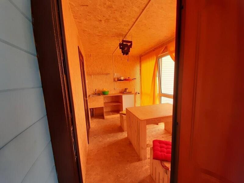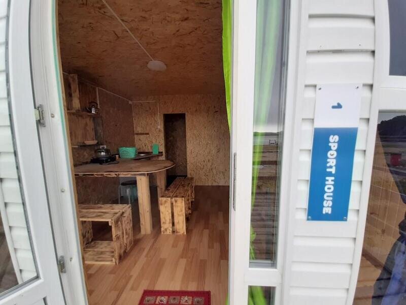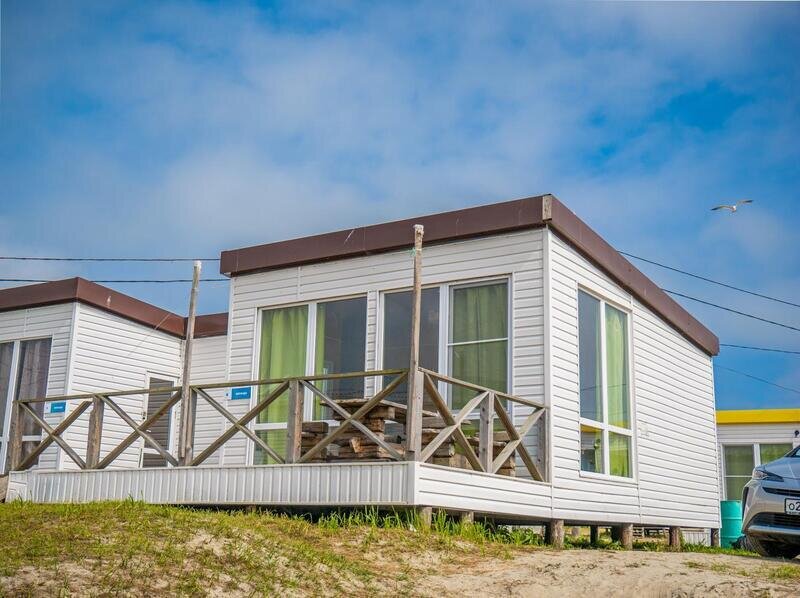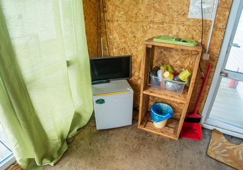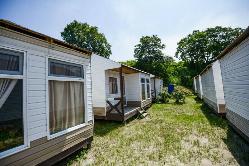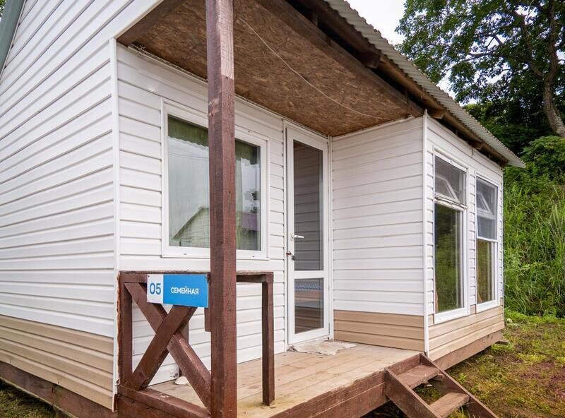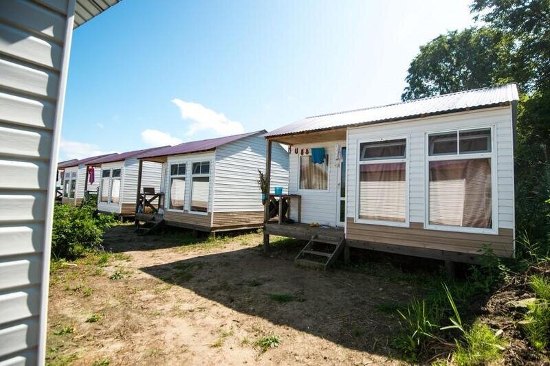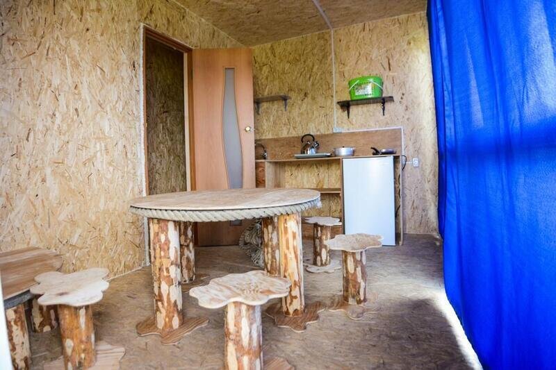 Проживать в домах могут трое взрослых и один ребенок до 12 лет. Санузел и душ в них отсутсутствуют, но это не беда. Все необходимое есть на территории базы. Чистый туалет и горячий душ предоставляются бесплатно. Для детей работает музыкальный туалет, чтобы малышам не пришлось скучать.