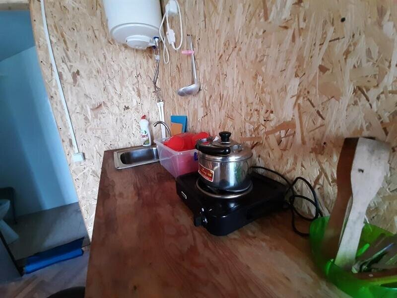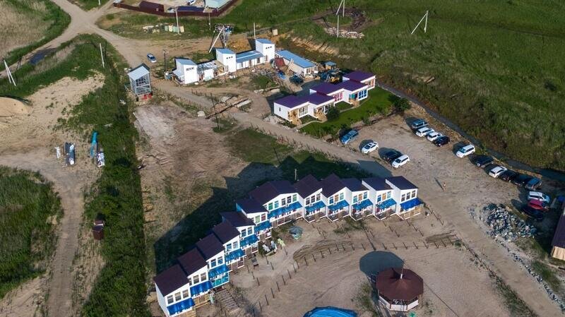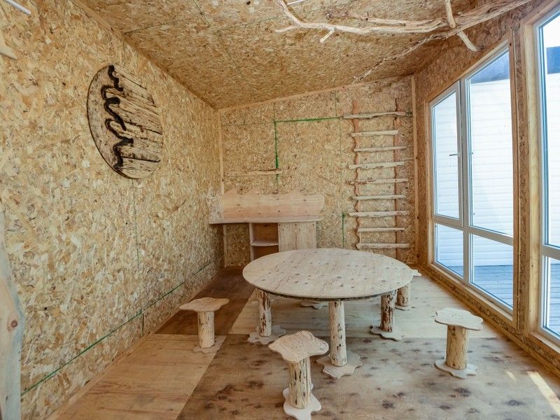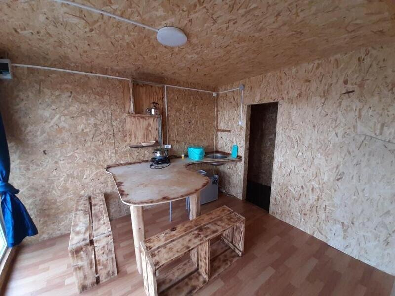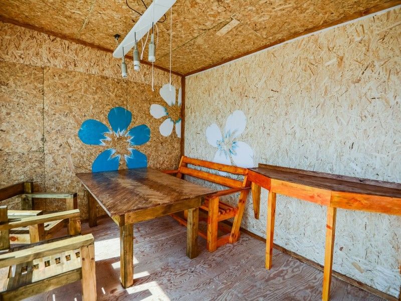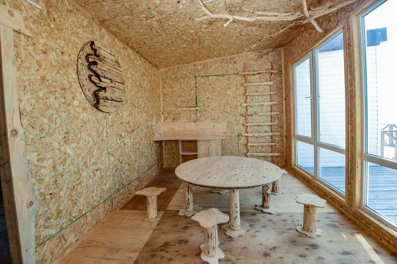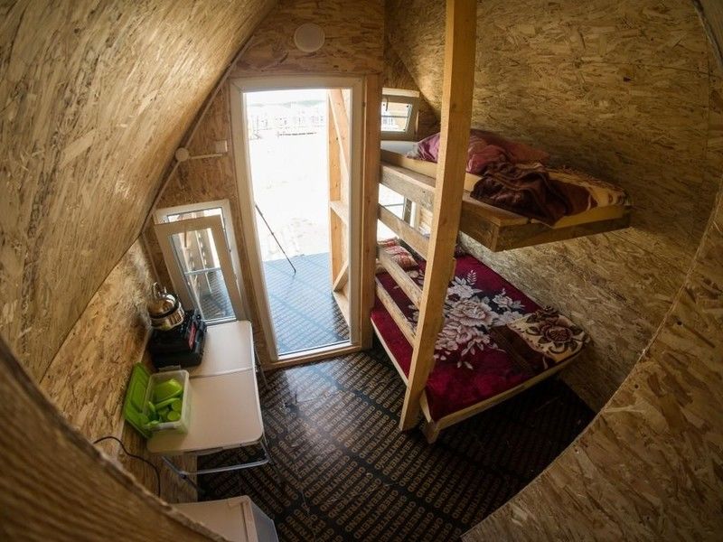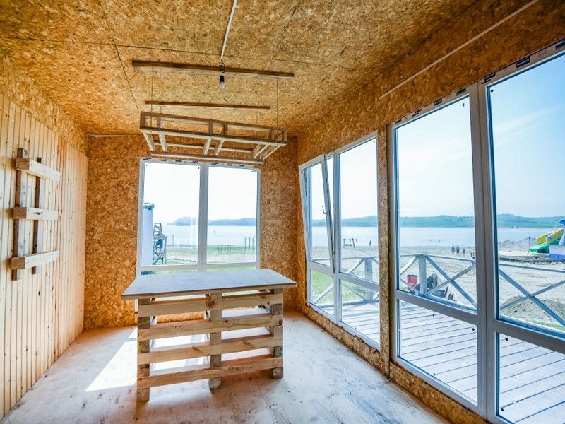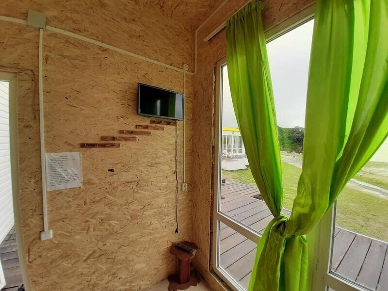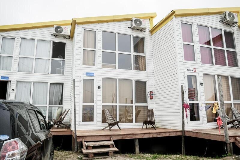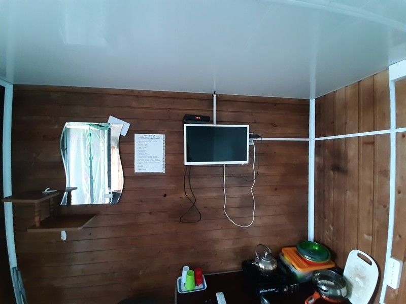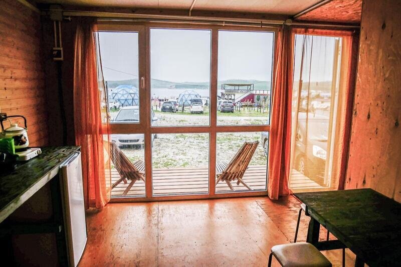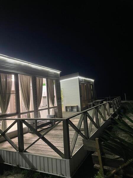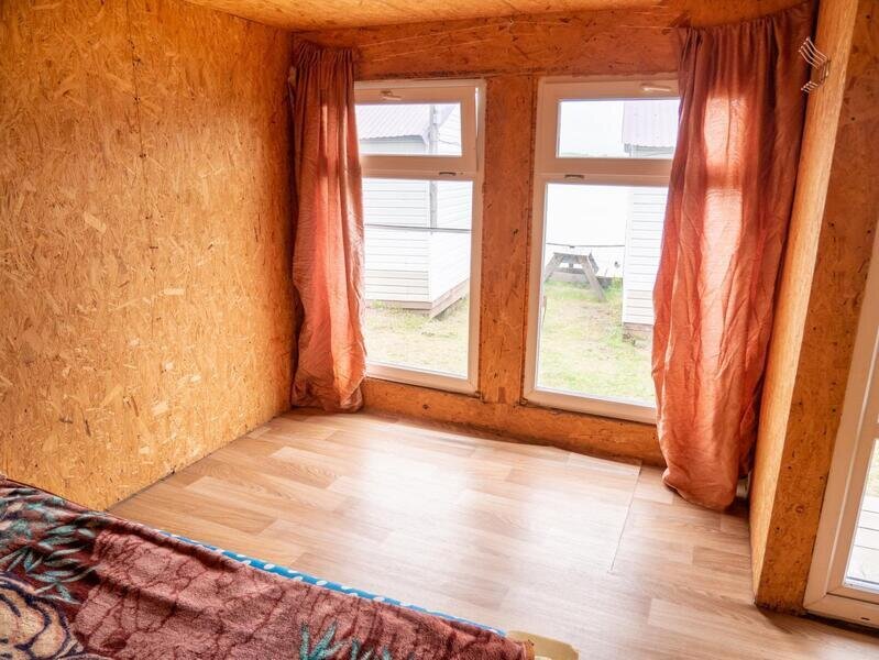 Проживать в домах могут трое взрослых и один ребенок до 12 лет. Санузел и душ в них отсутсутствуют, но это не беда. Все необходимое есть на территории базы. Чистый туалет и горячий душ предоставляются бесплатно. Для детей работает музыкальный туалет, чтобы малышам не пришлось скучать.