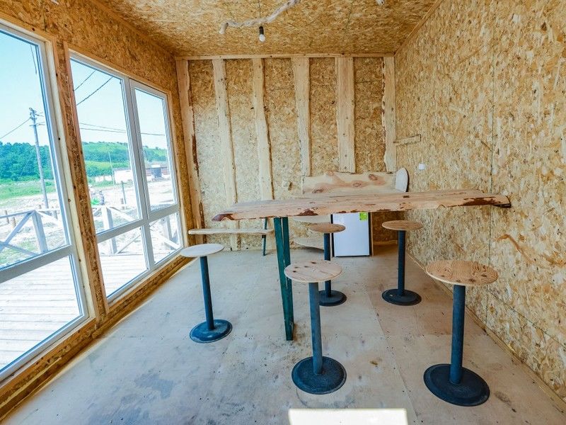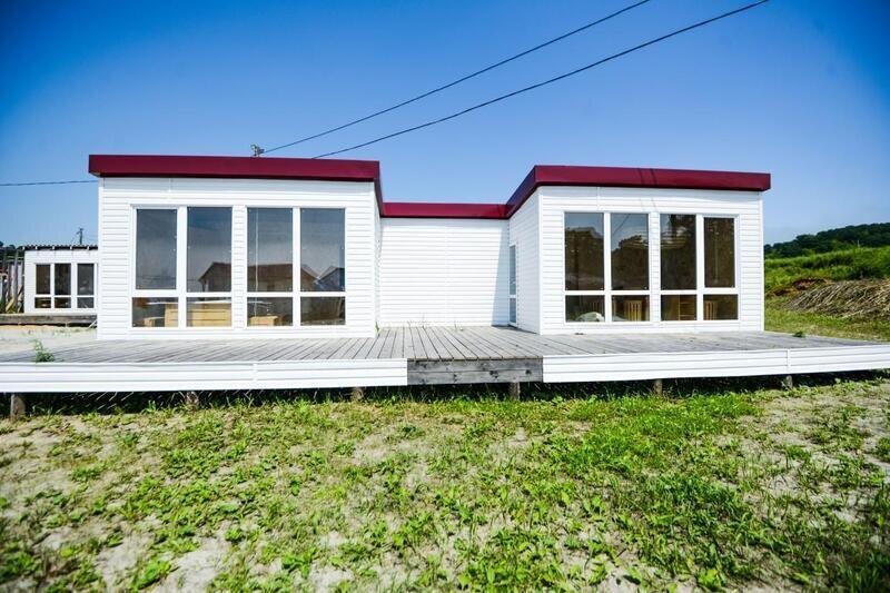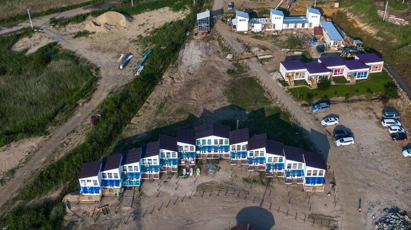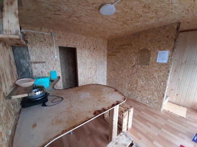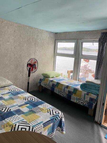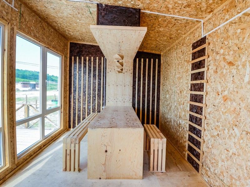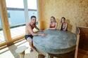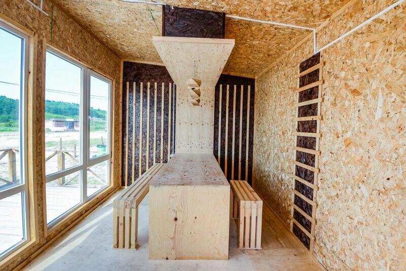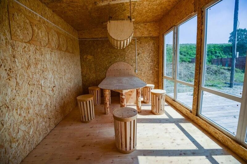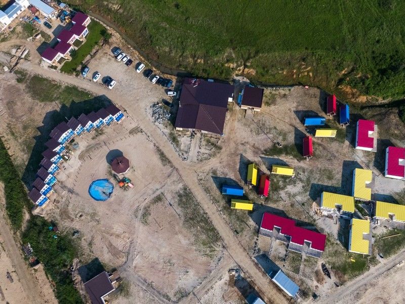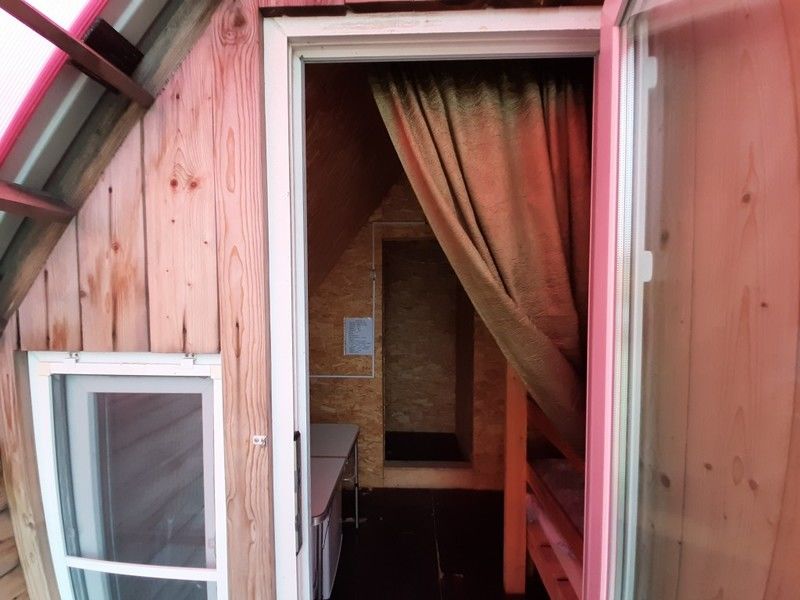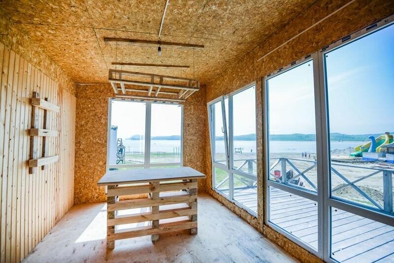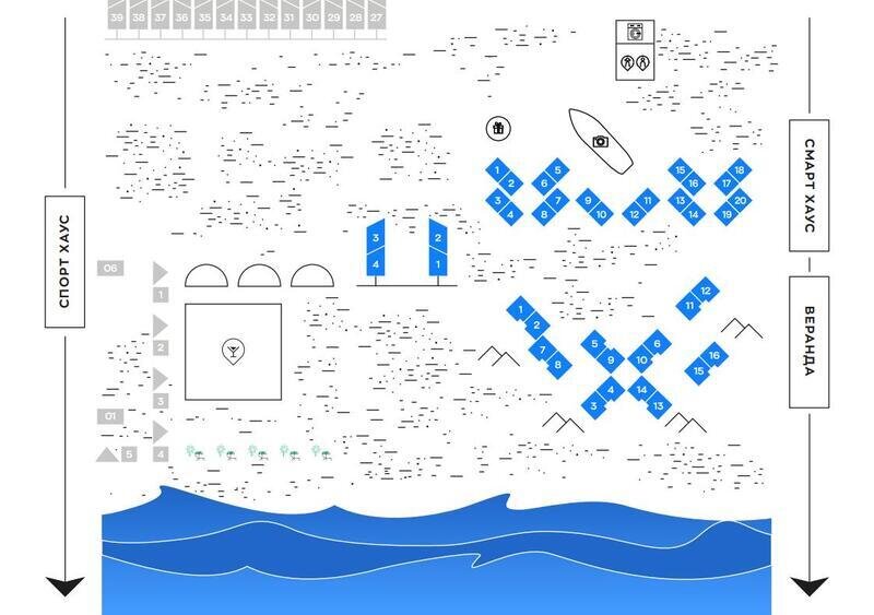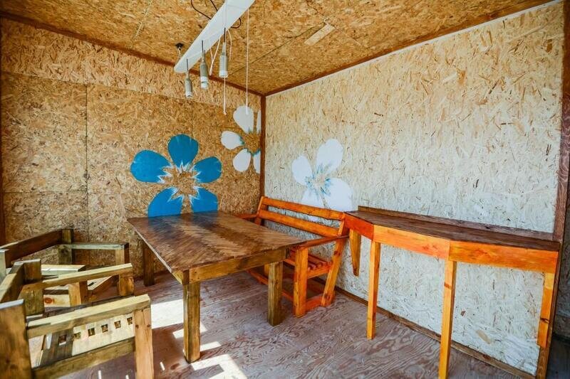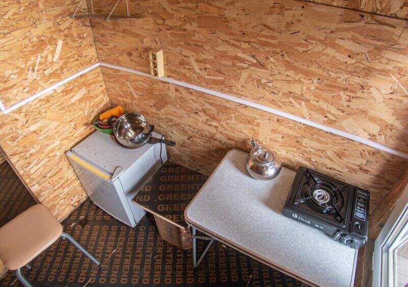 Проживать в домах могут трое взрослых и один ребенок до 12 лет. Санузел и душ в них отсутсутствуют, но это не беда. Все необходимое есть на территории базы. Чистый туалет и горячий душ предоставляются бесплатно. Для детей работает музыкальный туалет, чтобы малышам не пришлось скучать.