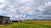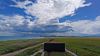 Далее едете ВДОЛЬ железнодорожных путей, пока не увидите впереди белые руины старых домов. Здесь сворачиваете вправо и далее по прямой до линии ЛЭП, которая идет вдоль пляжной полосы. Мостик переезжать НЕ нужно — возле него поворачиваете ВПРАВО и поднимаетесь НА мыс Молот вдоль ЛЭП и забора — оттуда открывается вид на соседнюю бухту и строения базы.