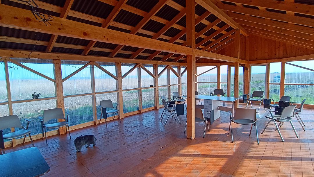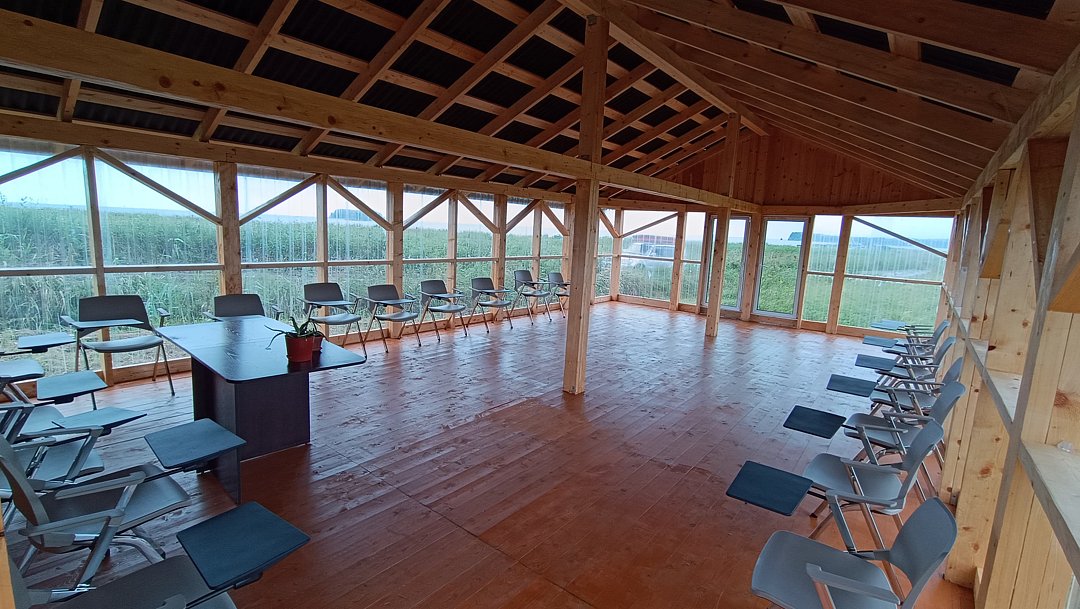 Читать полностьюРядом с гостевым комплексом построена большая крытая беседка с прозрачными стенами — все красоты этих мест видны, а от влаги, ветра и насекомых отдыхающие надежно укрыты.
