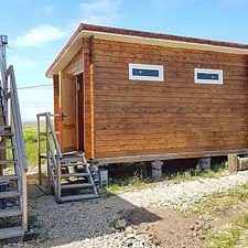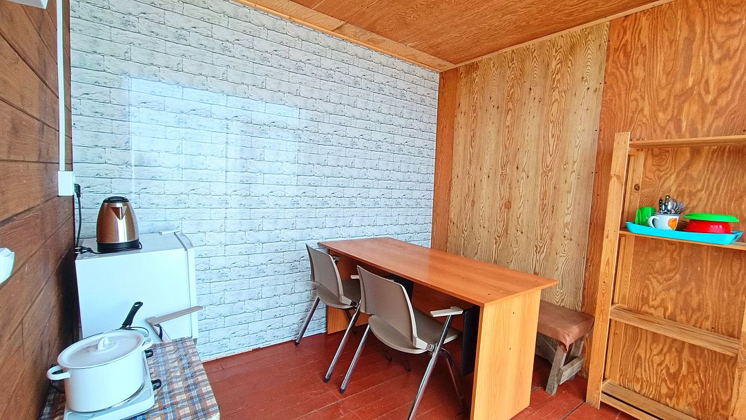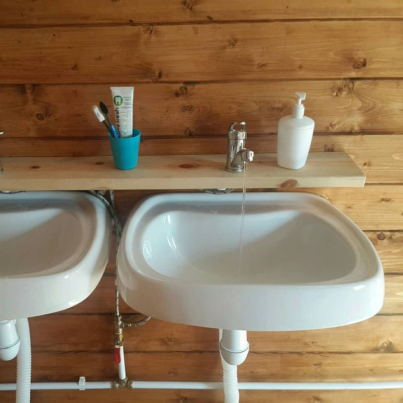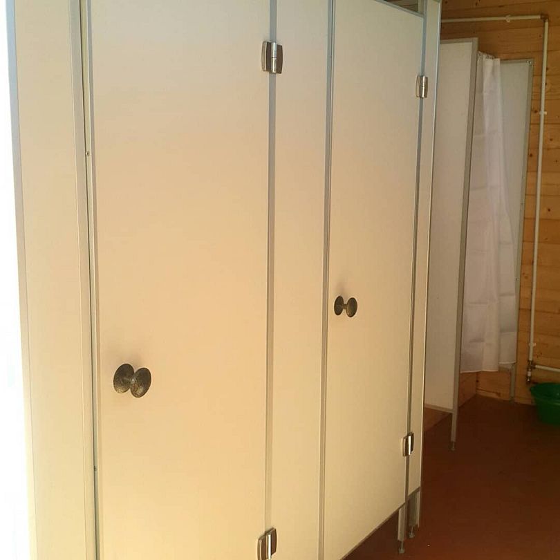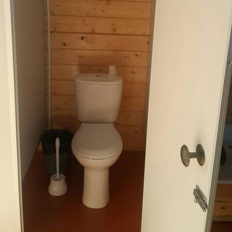 В самом гостевом комплексе водоснабжение в номерах отсутствует. Однако в отдельном здании, расположенном в нескольких шагах от номеров, оборудованы санузлы и душевые. Туда подведены коммуникации от биологического септика и скважины, а вода круглосуточно подогревается с помощью водонагревателя.