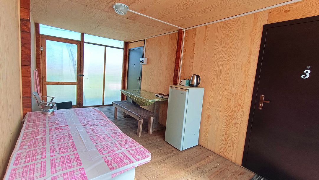 Для тех, кто предпочитает больше уединения, доступны комфортные домики. Они одинаковы по устройству и оснащению, но расположены немного дальше от гостевого комплекса и пляжа, что обеспечивает тишину и уют. В каждом домике есть собственные санузел и кухня.
