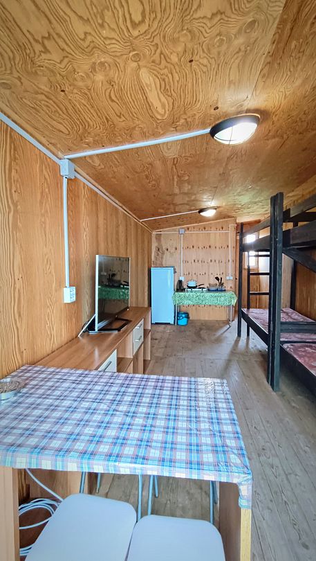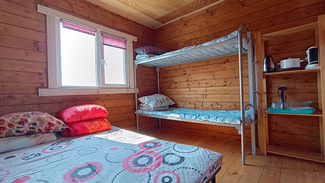 Каждый номер оборудован двуспальной кроватью. В зависимости от типа номера (4-местный Семейный или 3-местный Эконом) также предусмотрена двухъярусная или односпальная кровать. В номерах есть одеяла, подушки, матрасы, стеллаж, вентилятор или обогреватель (в зависимости от сезона), а также розетки.