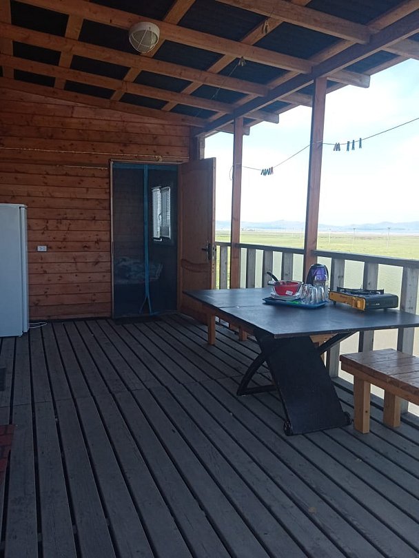 С террасы возле номера 2 выход на сторону с видами на степь, закаты, к мангальной зоне.