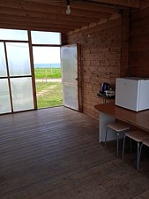 Санузел городского типа для номеров гостевого комплекса предусмотрен в отдельном строении в 3-х шагах от комплекса. С собой необходимо взять постельное белье на полутороспальные кровати, еду и полотенца.