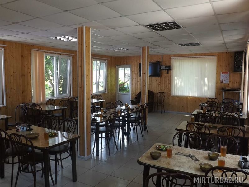 Питание организовано в кафе базы отдыха. Готовить в номерах не предусмотрено.