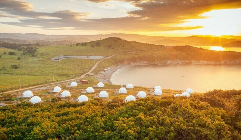Путешествие с парой8 дней в бухте АлеутМы посетили этот глэмпинг в первый сезон их деятельности и не пожалели. Прекрасные вид на море, уютный купол, очень доброжелательная команда глэмпинга. Самое сильное впечатление - чаны с умеренно горячей водой, в которых мы каждый вечер любовались заходом солнца. Были и небольшие проблемы, но сотрудники быстро их исправляли