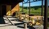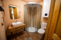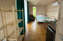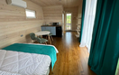 Натуральное дерево, панорамные окна. в спальне: 2спальн. кровать, в гостиной миникухня и антресольны этаж с 2спальн. кроватью, Х, СВЧ, К, конвектор, с/у с душем, крытая терраса