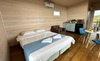 Мини кухня с посудой, чайником, микроволновой печью и холодильником. Санузел с душевой. Двуспальная кровать, 1,5 спальная кровать, конвектор и кондиционер, терраса с видом на бухту Алеут. На террасе установлена теплая купель фурако.