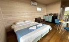 Мини кухня с посудой, чайником, микроволновой печью и холодильником. Санузел с душевой. Двуспальная кровать, 1,5 спальная кровать, конвектор и кондиционер, терраса с видом на бухту Алеут.