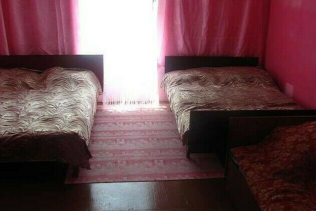 На каждом этаже двухэтажного дома расположены три комнаты, горячий душ и благоустроенный туалет. Каждая комната рассчитана на размещение 2-6 человек и оборудована: двуспальной и односпальной кроватями, газовой печью (газовые баллончики за свой счет), холодильником, чайником, посудой, столами, стульями, телевизором и зеркалом. Централизованное электричество, розетки имеются во всех комнатах. Предоставляются постельные принадлежности и белье. Возле дома расположены несколько беседок, мангалы и песочница для детей.