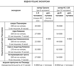 - Гора Пяйнур (40 км на катере,7 км пешком, 6 часов) — 18000 ₽;