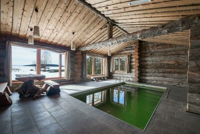 Оформление комплекса не даст вам забыть, что вы находитесь в одном из самых живописных уголков нашей страны – Карелии. Благодаря панорамному остеклению в зоне бассейна вы сумеете, не прерываясь, наслаждаться природными красотами.