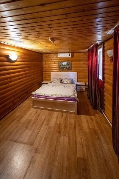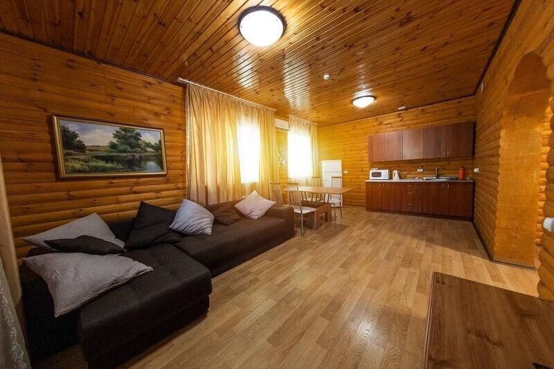Шестиместный деревянный домик отлично подойдет и для большой семьи, и для небольшой компании!