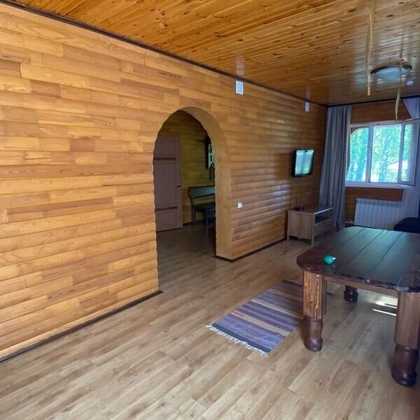 Две двуспальные кровати и диван позволят разместиться всем вашим близким. Просторная кухня со всей необходимой бытовой техникой поможет устроить вечеринку в любое время года, а веранда со столом и лавочками обеспечит веселые посиделки летним вечером.