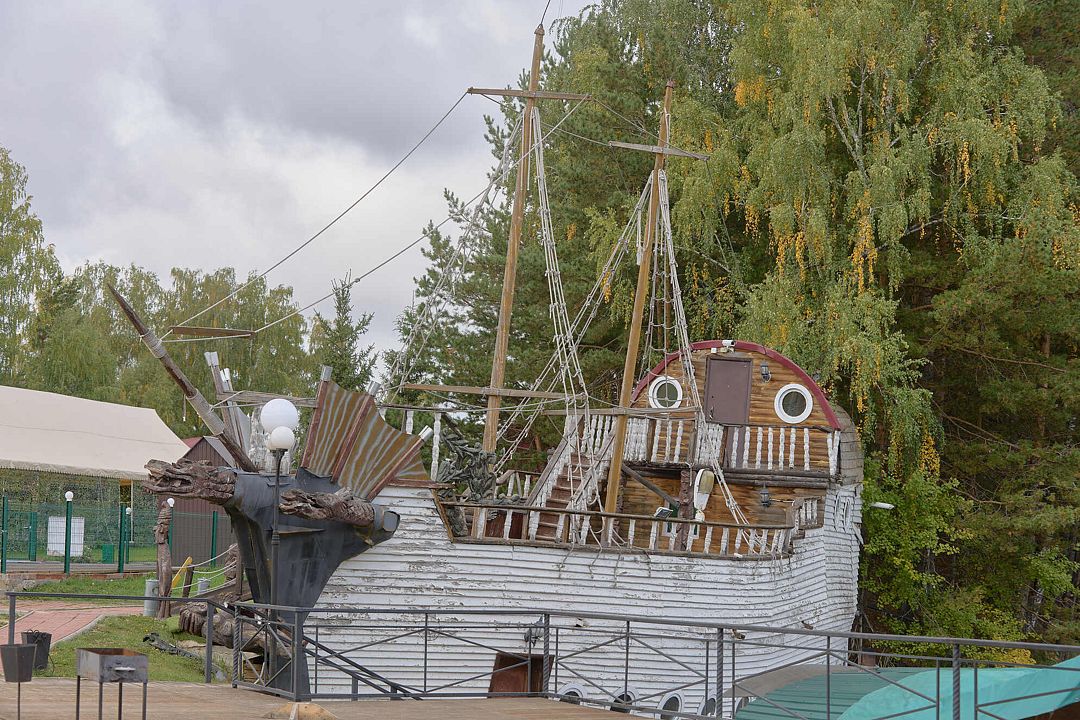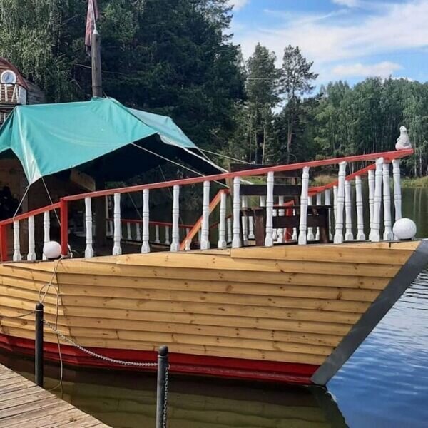 Корабль с баней на дровах. На борту есть небольшая кухонька и мангал.