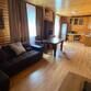 Двуспальная кровать, дамский столик, кондиционер, шкаф, комод. В гостиной раскладной диван, обеденная зона, кухонный гарнитур с посудой, микроволновая печь, чайник, холодильник. Душевая кабина, туалет, полотенца.