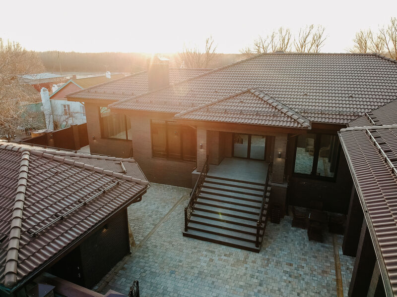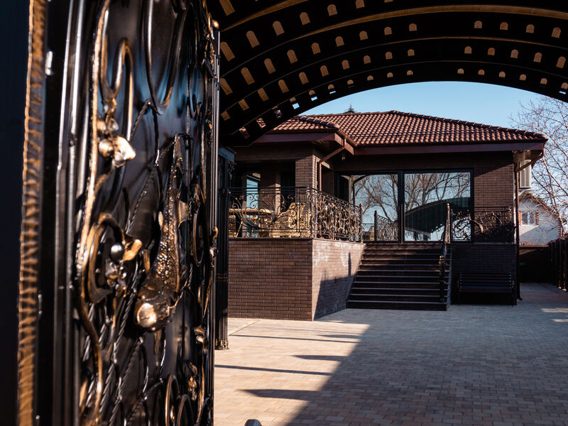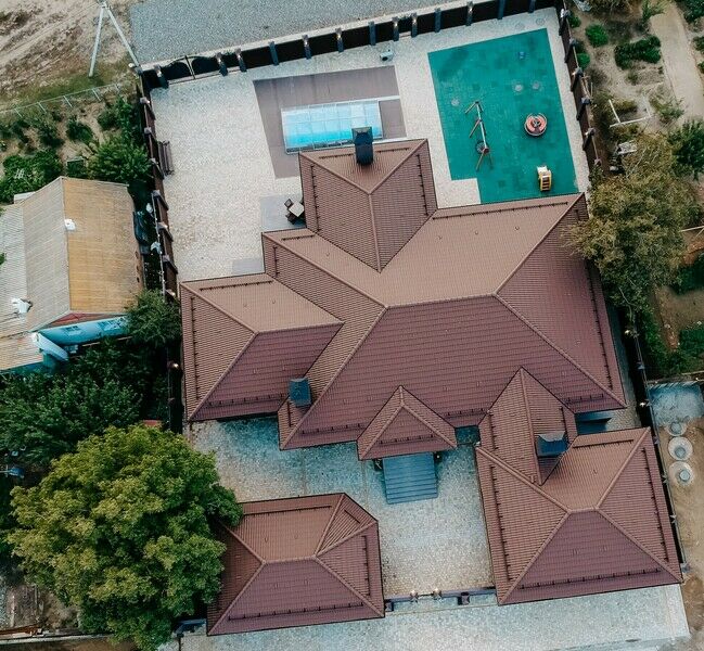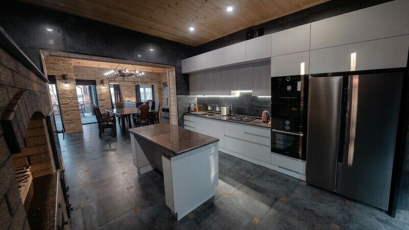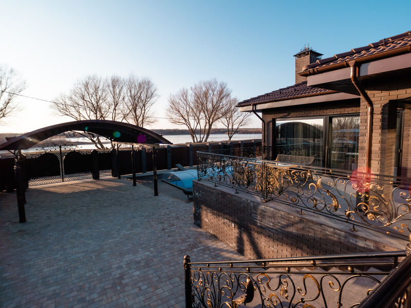 В гостевом доме 2 гостиные, 3 спальни с видом на реку имеют собственные выходы к бассейну, кухня с мангалом, столовая, прачечная комната, две стиральные машины, утюг, гладильная доска, два санузла, гараж на два автомобиля, тёплые полы, системы кондиционирования. Банный комплекс - хаммам. Бассейн с подогревом и противотоком, станцией водоподготовки. Детская площадка с аттракционами.