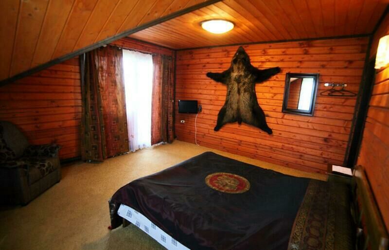 Банкетный зал вместимостью до 30 человек, камин, телевизор, музыкальный центр, караоке, кухня с электрической плитой, микроволновой печью, холодильником, душевая, туалет, 3 спальные комнаты, каждая с двуспальной кроватью и ТВ, выход на балкон.