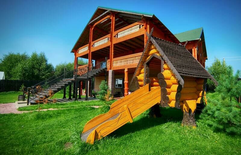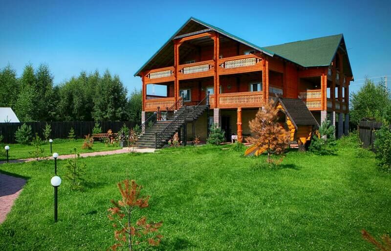Трехэтажный коттедж вместимостью 30 человек. Спальных мест 18. Территория с полем для игры в волейбол, теннисным столом, малой горкой, качелями и подиумом для проведения концертов или выездной регистрации (свадеб).