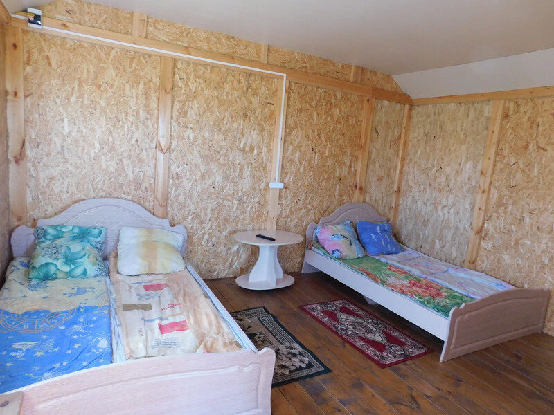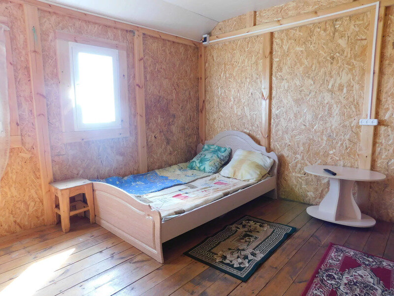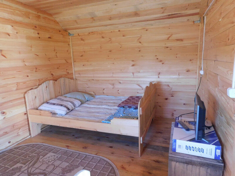 Небольшой 4-х местный домик купейного типа. В домике есть электричество, свет, подушка, матрац, одеяло. Постельное белье свое или за дополнительную плату. Один автомобиль возле домика бесплатно!