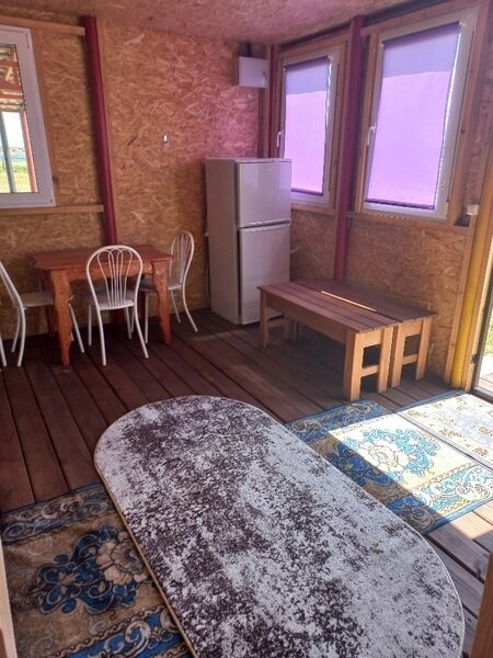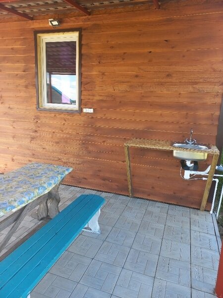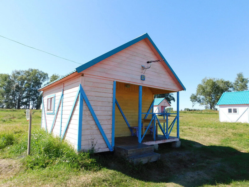 3-х и 4-х местные домики с верандой. В домике есть электричество, свет, чайник, холодильник, телевизор, столик внутри и на веранде стол с лавочкой, подушка, матрац, одеяло.