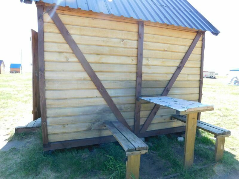 4-х местный домик купейного типа, больше размера домика "Бюджет". В домике есть электричество, свет, подушки, матрацы, одеяла, холодильник, столик и столик с лавочками на улице. Постельное белье свое или за дополнительную плату.