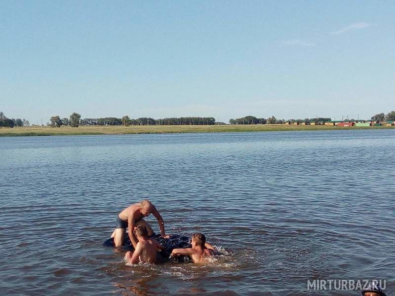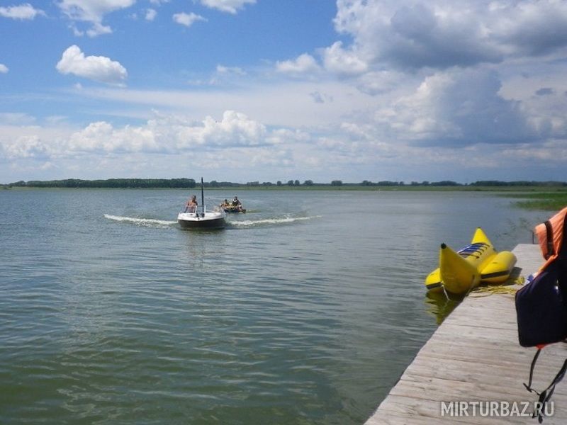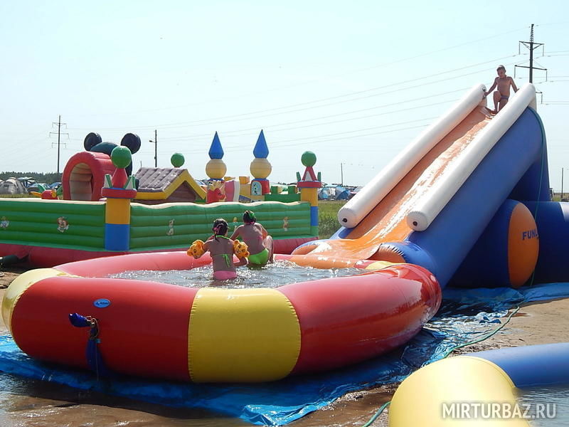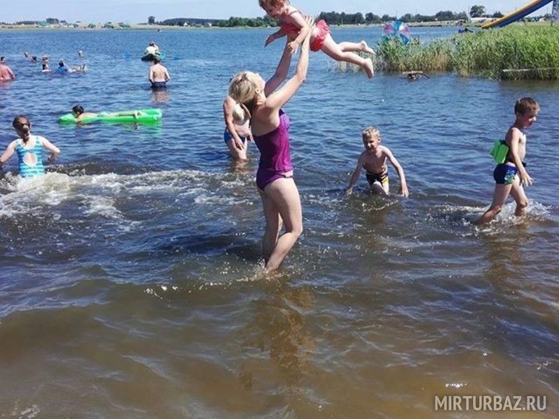 На пляже у озера для Ваших деток имеется большое количество развлечений, в том числе водная горка, надувной городок и другие.