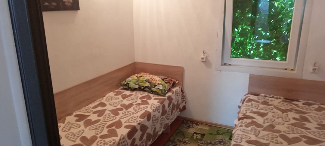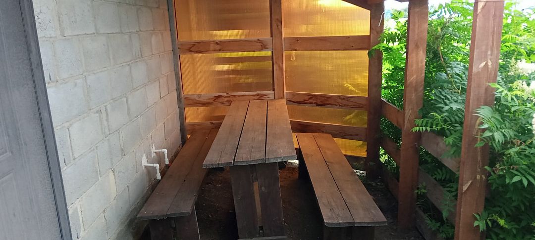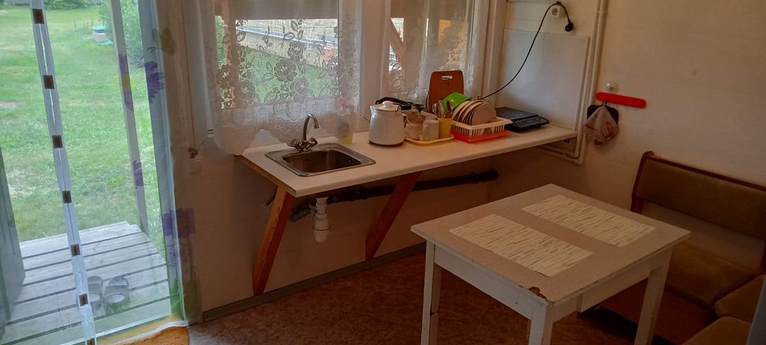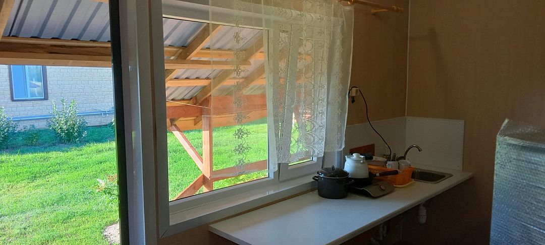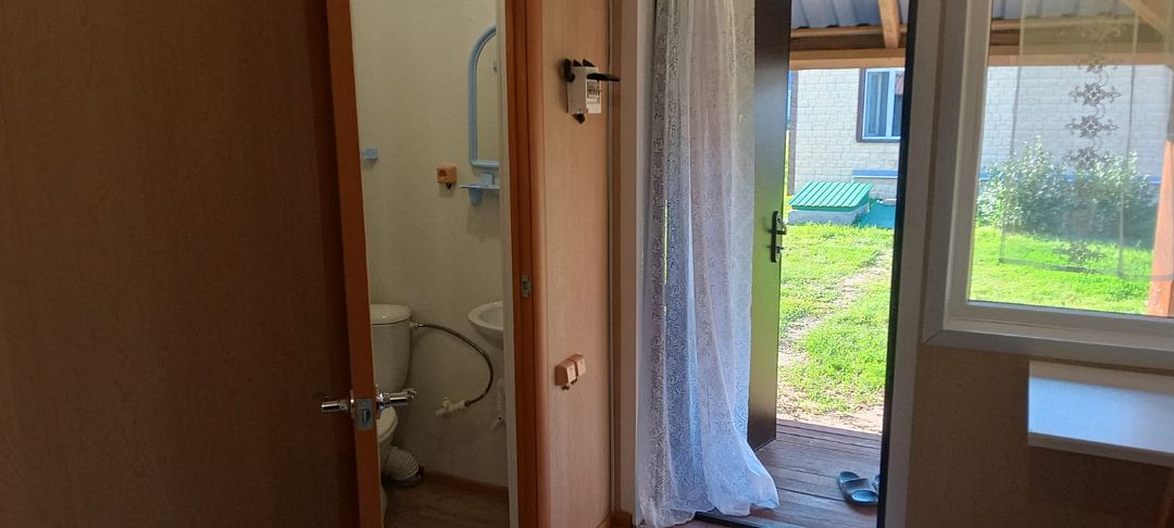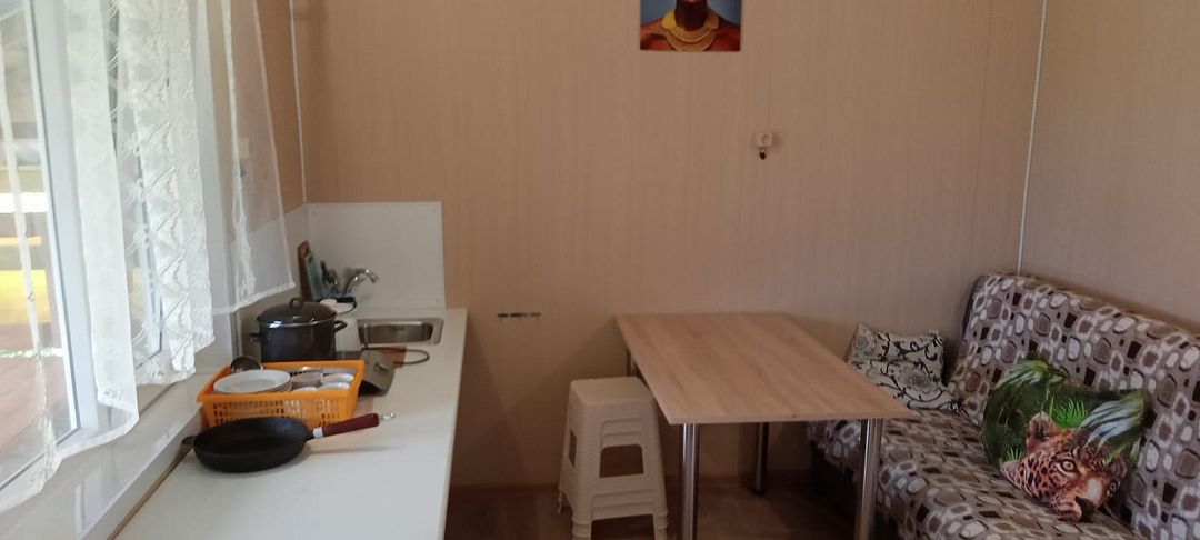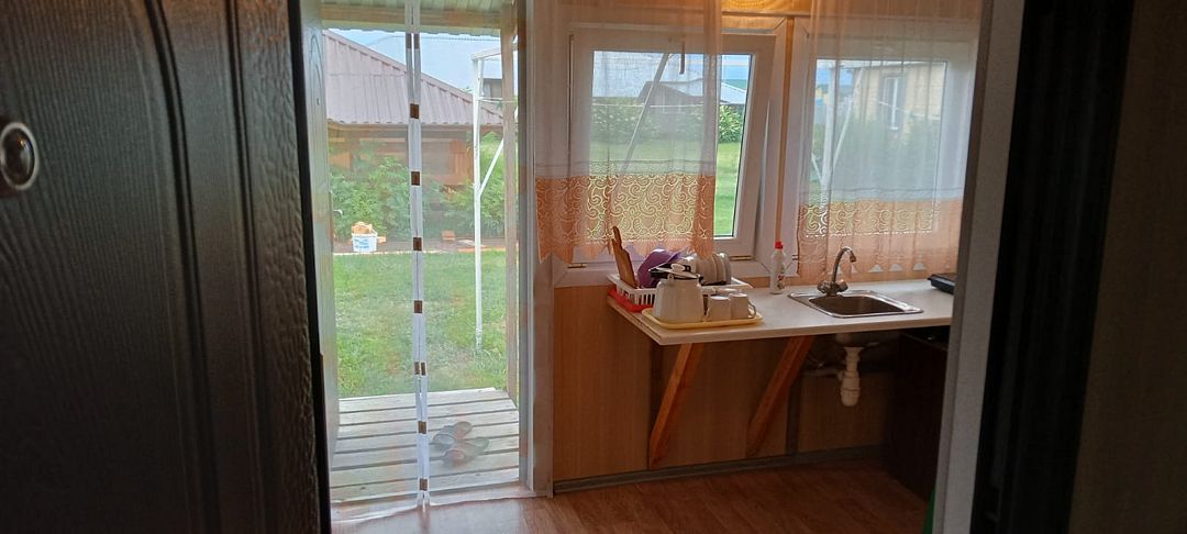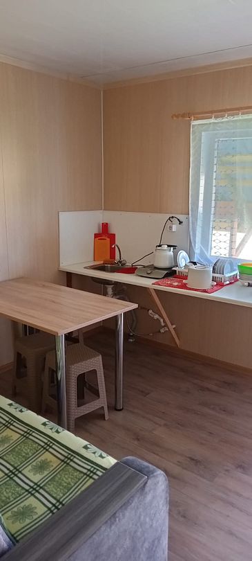 Слышимость 100%,слышно как хропят соседи. Посуда со сколами, чайник железный, правда индукционная плита. Бумага туалетная не предоставляется, постельное белье за доплату. Туалет, горячая вода в домике, минус вытяжки нет и очень сильно пахнет из уборной, плотно надо закрывать дверь.