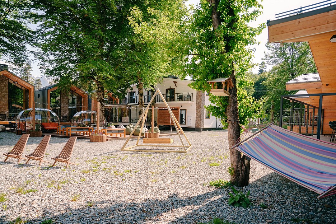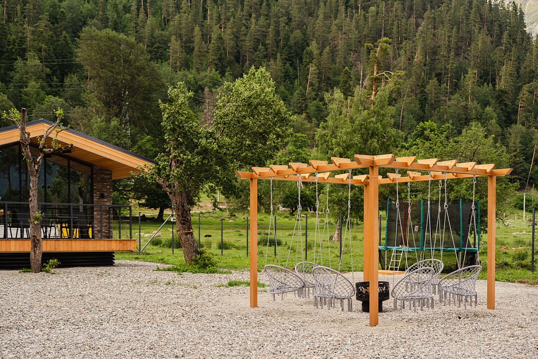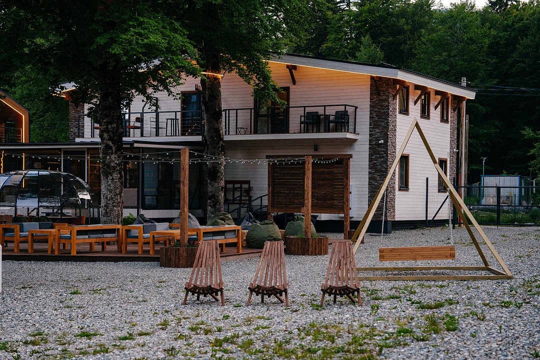 Для гостей созданы все условия, чтобы отдых запомнился надолго. Дети с радостью проводят время на игровой площадке с домиком на дереве и батутом, а взрослые могут устроить вечерний пикник в беседке с мангалом, собраться у костровой зоны или отдохнуть в гамаках под шелест листвы. Бесплатный Wi-Fi и охраняемая парковка добавляют удобства, а близость магазинов, аптек и горнолыжного курорта делает пребывание еще более комфортным.