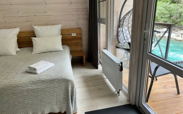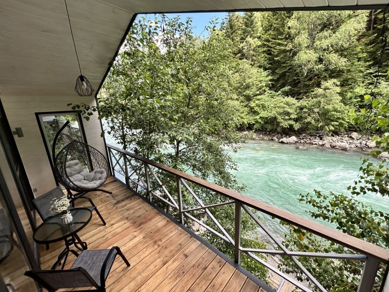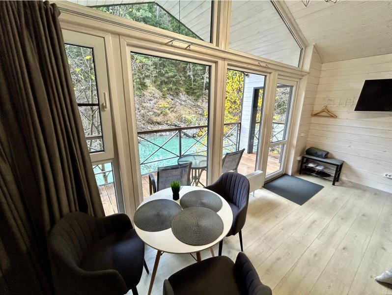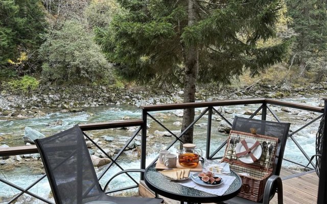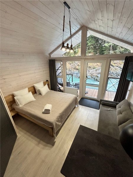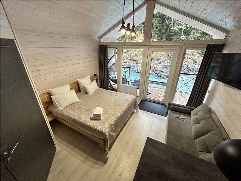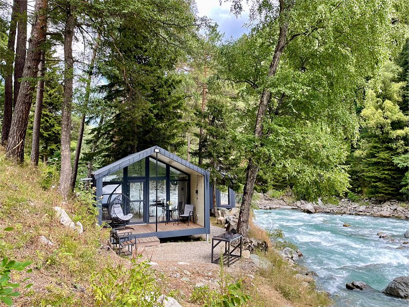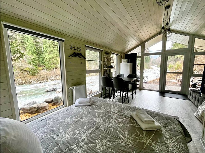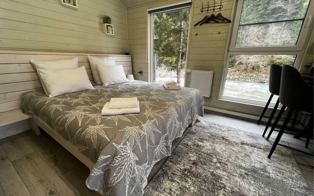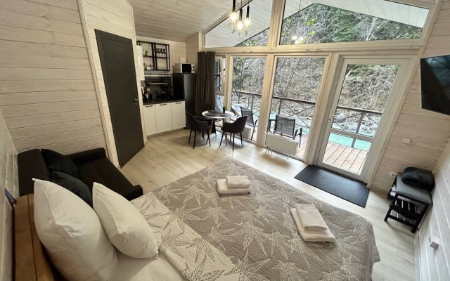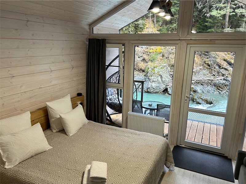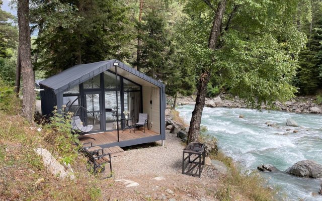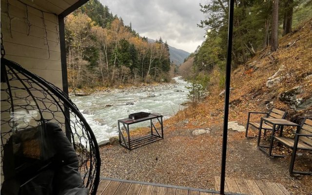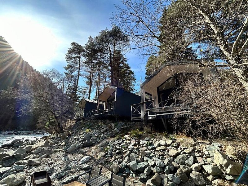 Здесь уютные домики разместились на самом берегу горной реки. Панорамные окна, удобства и стильный интерьер никого не оставят равнодушными. Рядом оборудованы специальные мангальные зоны.