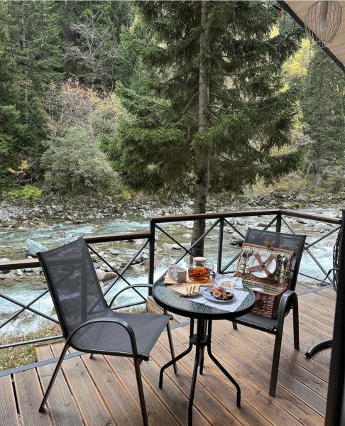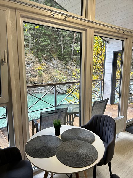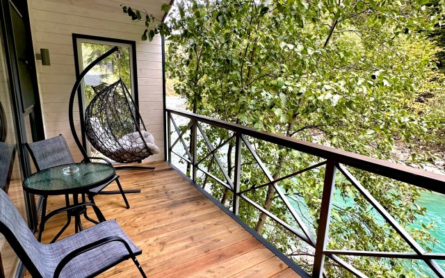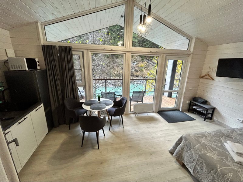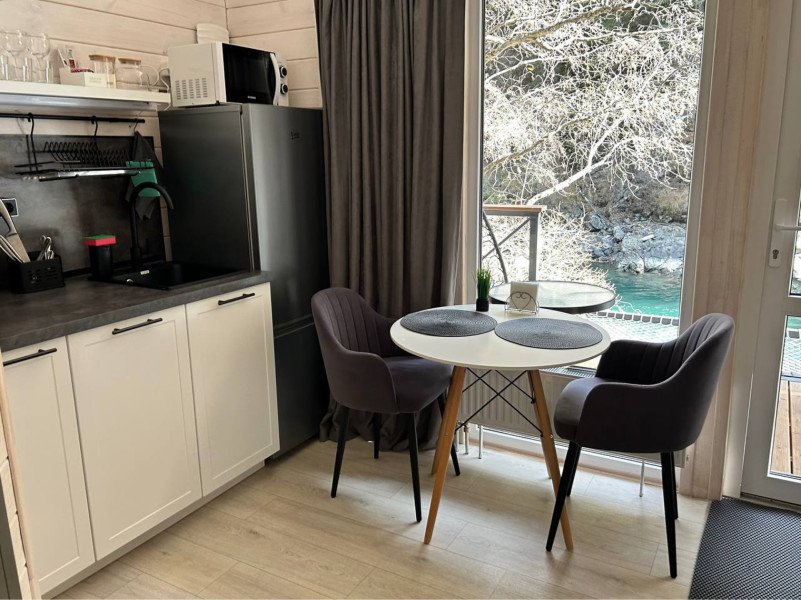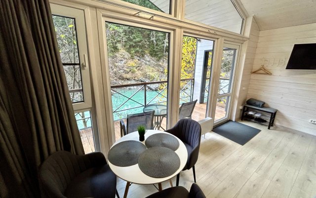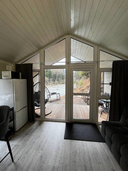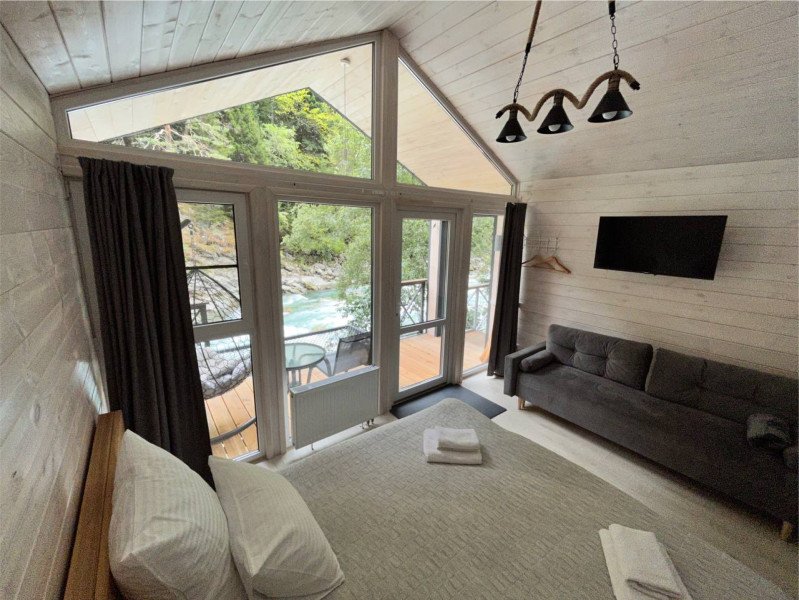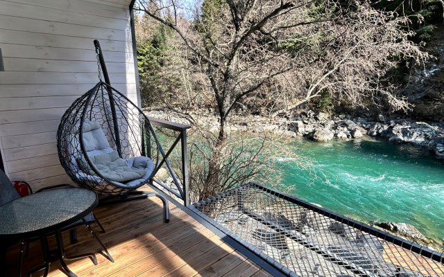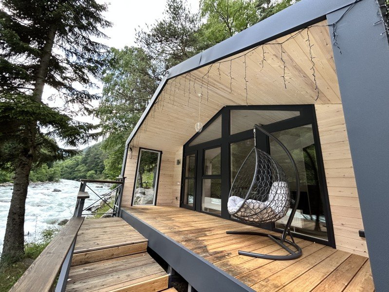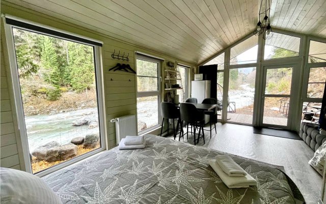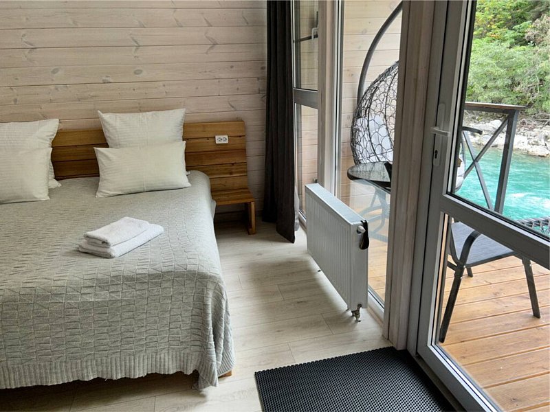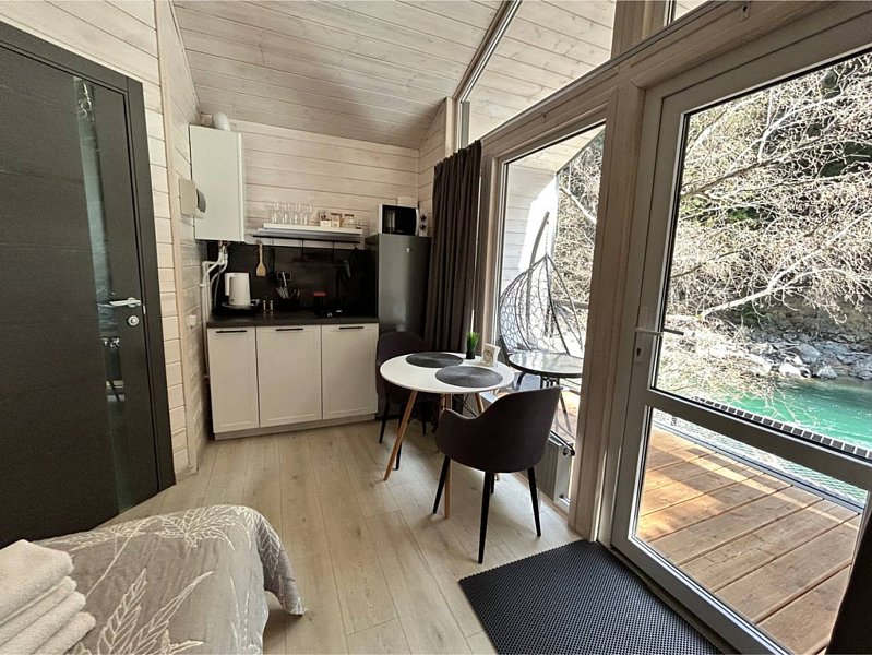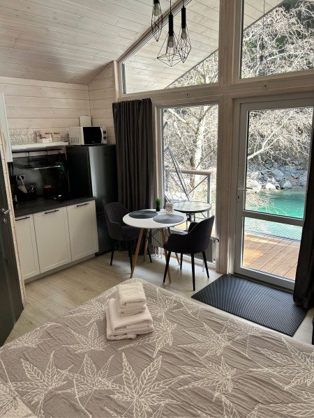 Здесь уютные домики разместились на самом берегу горной реки. Панорамные окна, удобства и стильный интерьер никого не оставят равнодушными. Рядом оборудованы специальные мангальные зоны.