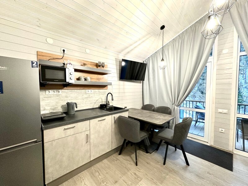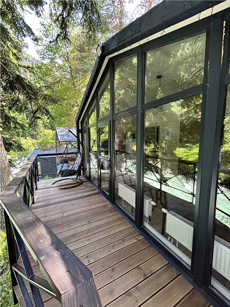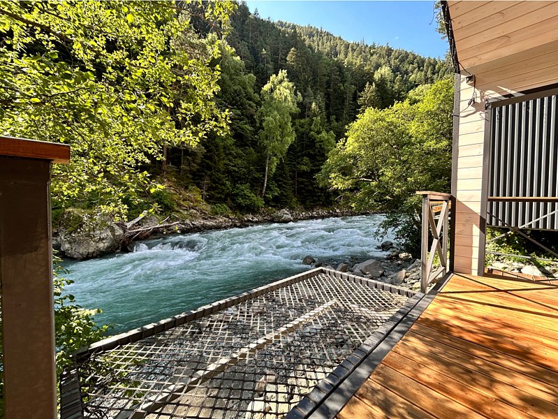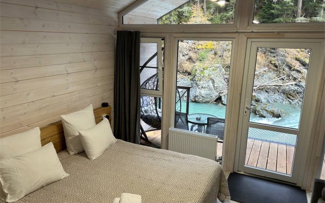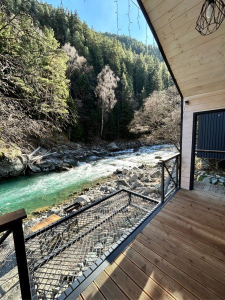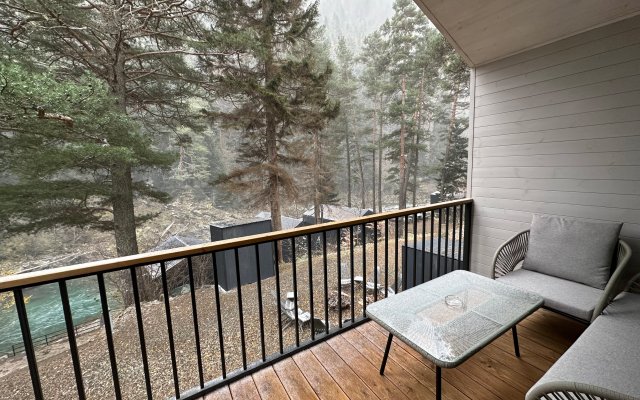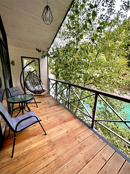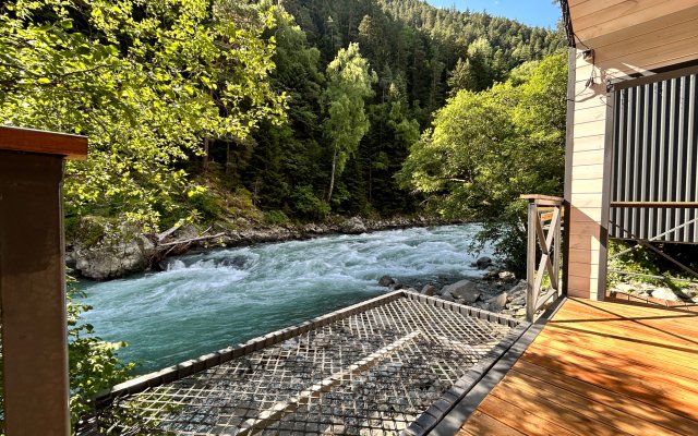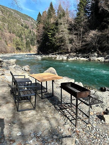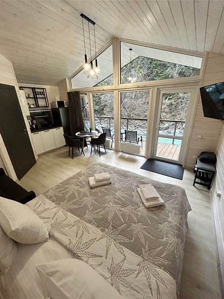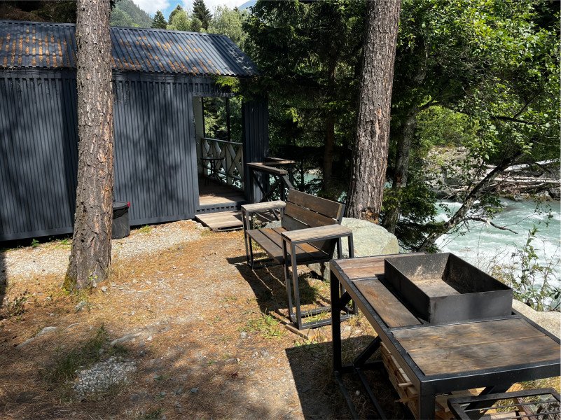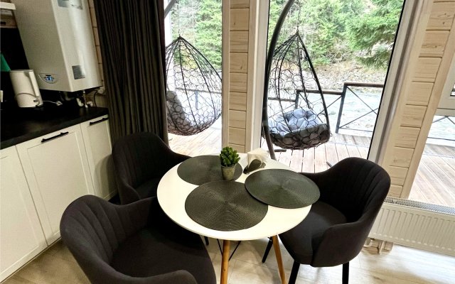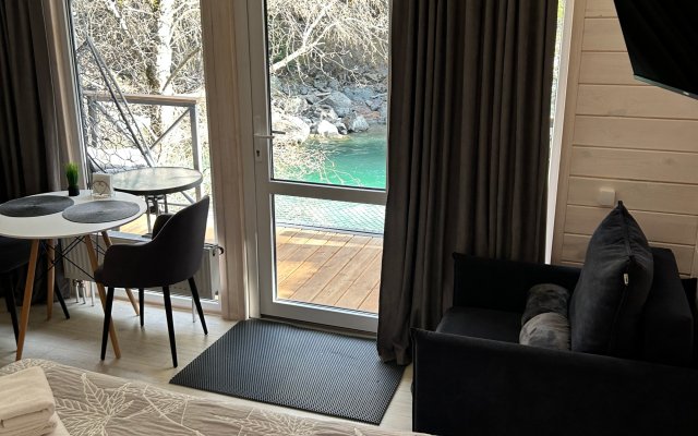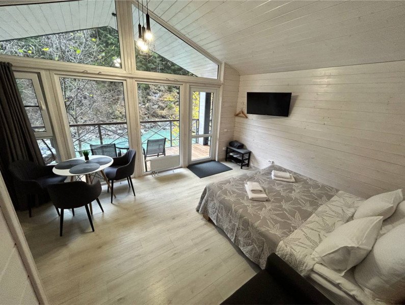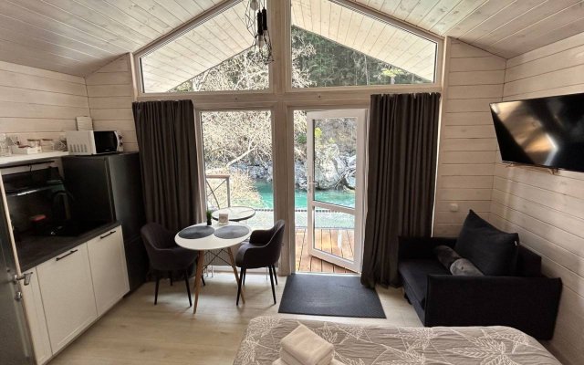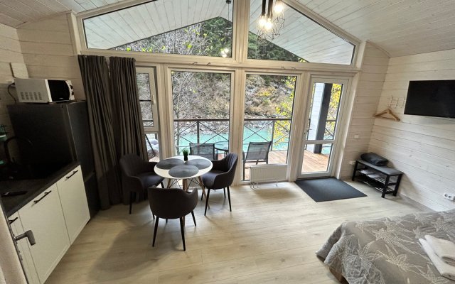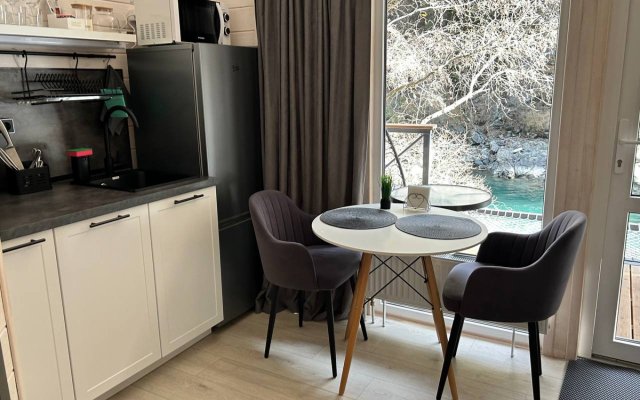Здесь уютные домики разместились на самом берегу горной реки. Панорамные окна, удобства и стильный интерьер никого не оставят равнодушными. Рядом оборудованы специальные мангальные зоны.
