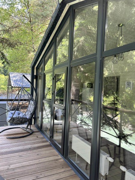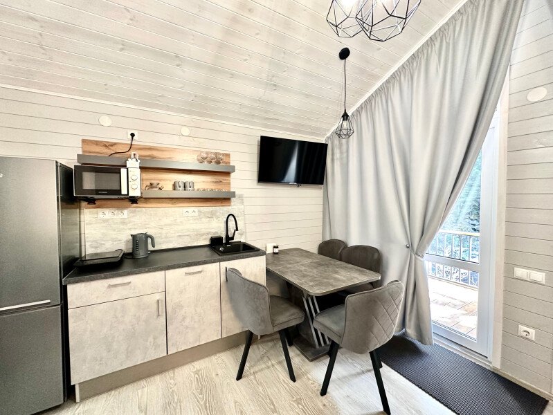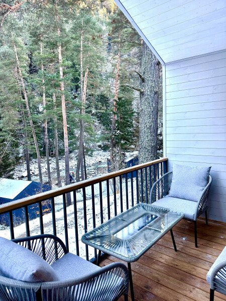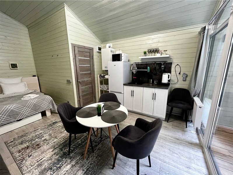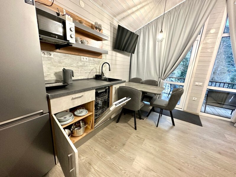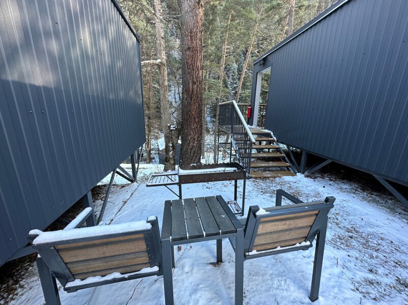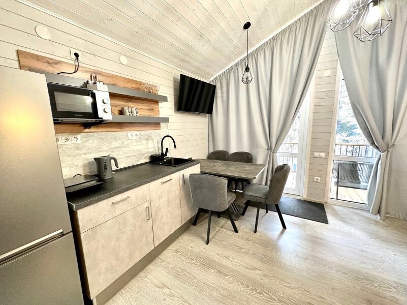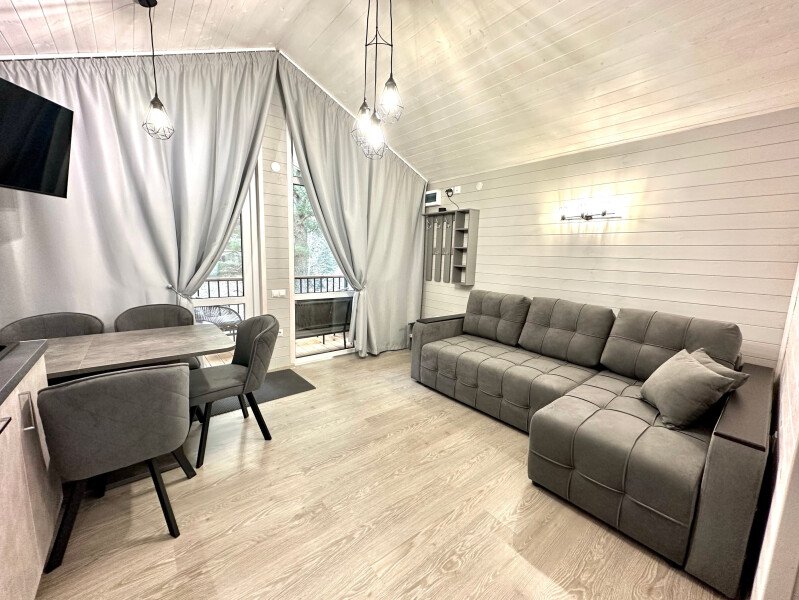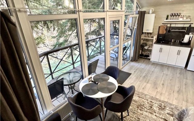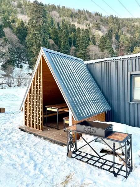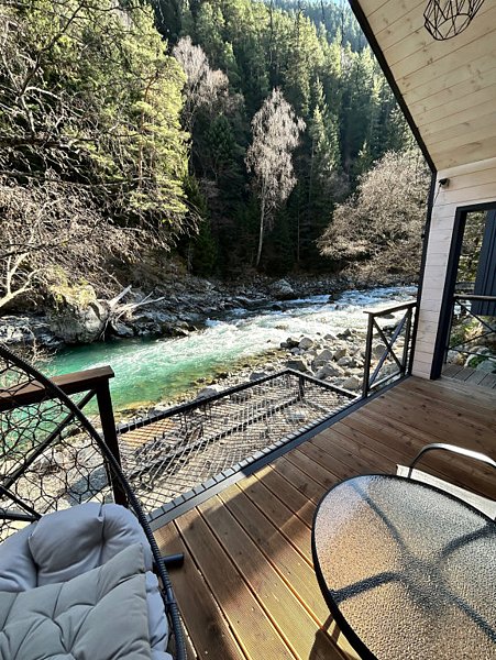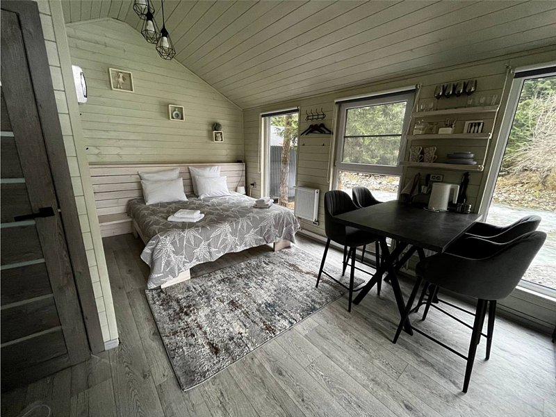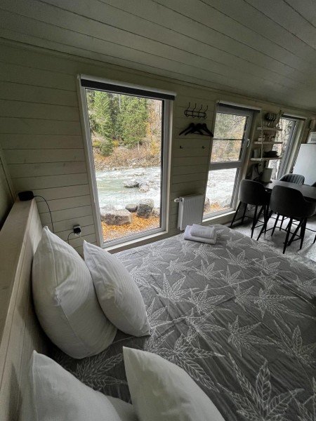 Здесь уютные домики разместились на самом берегу горной реки. Панорамные окна, удобства и стильный интерьер никого не оставят равнодушными. Рядом оборудованы специальные мангальные зоны.