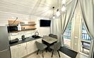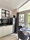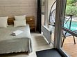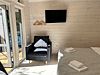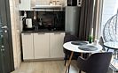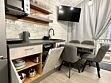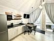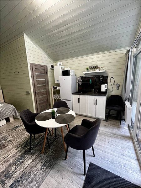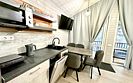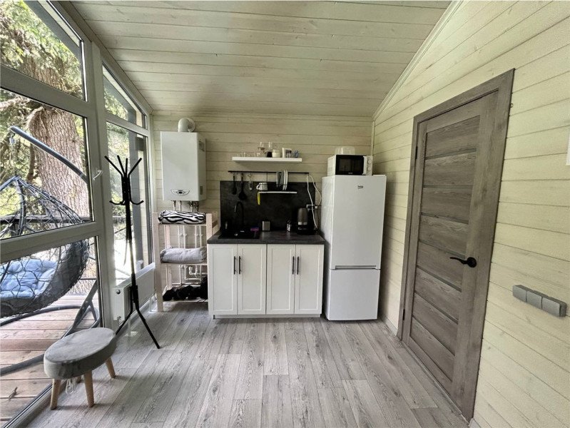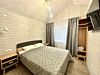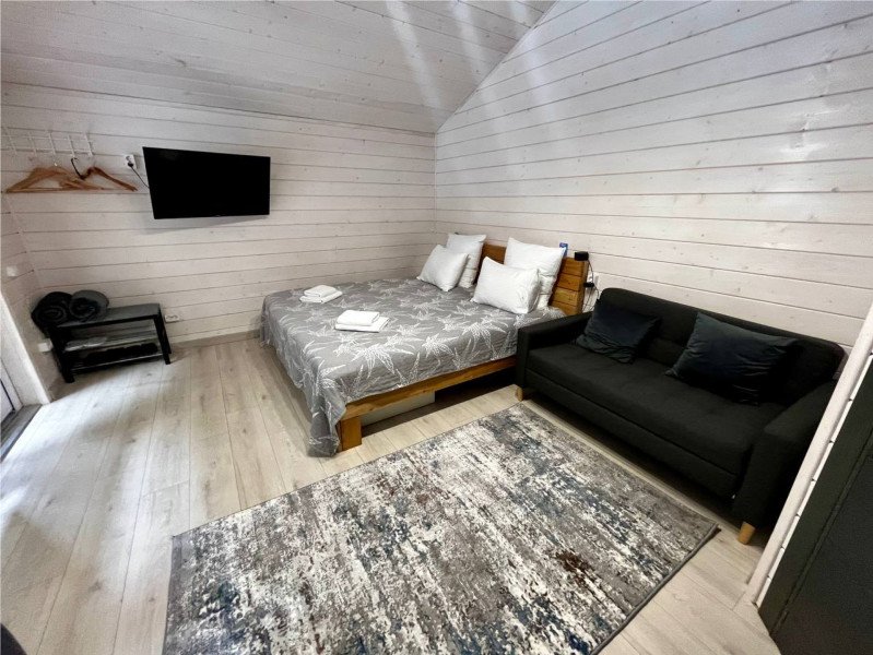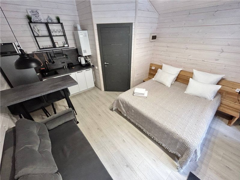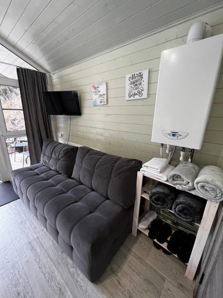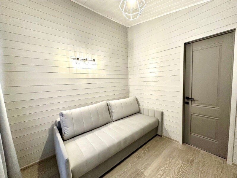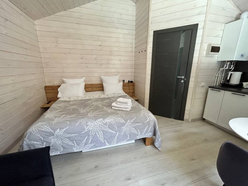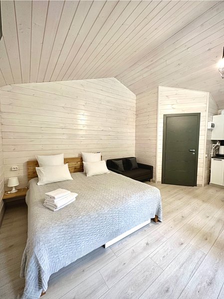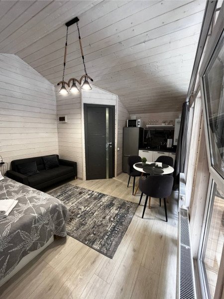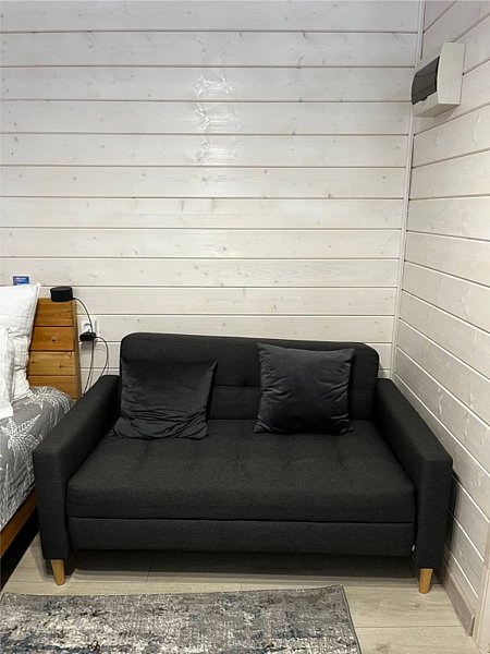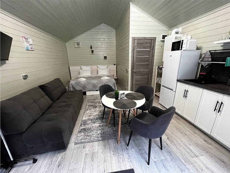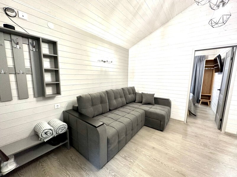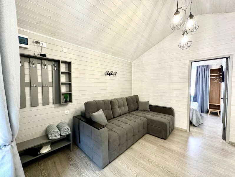 Во второй части находится отдельная полноценная комната с раскладным диваном, собственным сан узлом, душем и кухонной зоной с холодильним, чайником, микроволновкой.
