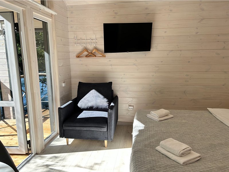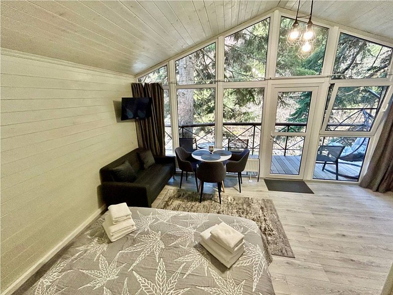 Двухместный коттедж с балконом и с красивым видом из окна