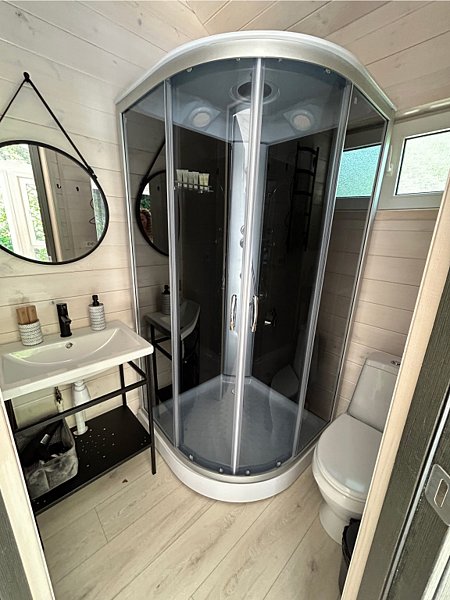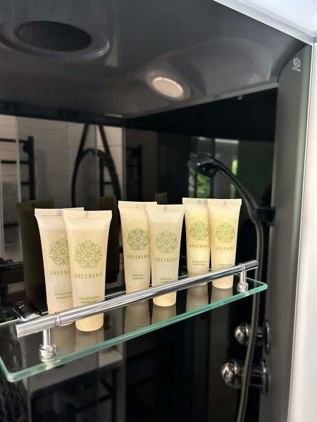 - санузлом, с большой душевой кабиной, бойлером, феном, полотенцами, банными принадлежностями и средствами личной гигиены;