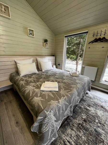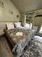 Двухместный коттедж с балконом и с красивым видом из окна двуспальная кровать