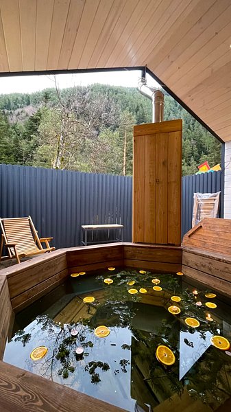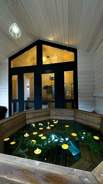 Также на территории есть уютная беседка, детская площадка с батутом, зона отдыха с костром, волейбольная площадка, а также баня с чаном, чтобы расслабиться и согреться после насыщенного дня. Можно заказать холодный или горячий чан.