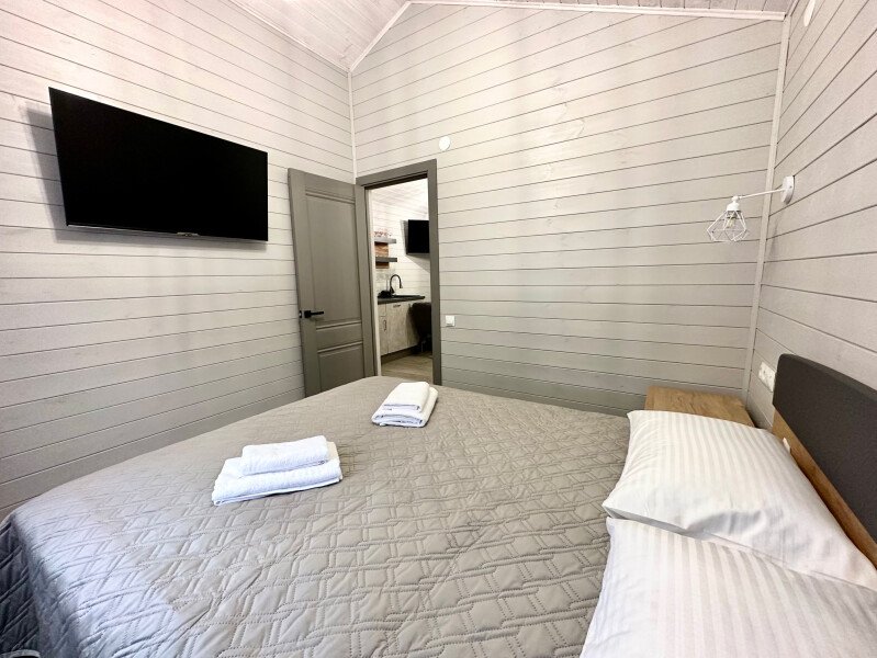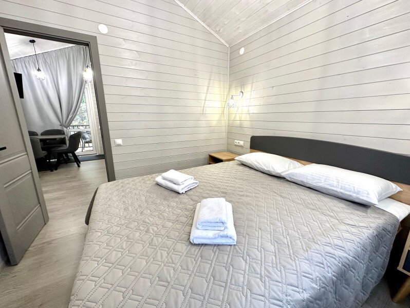 Двухместный коттедж Premium с балконом и с красивым видом из окна двуспальная кровать