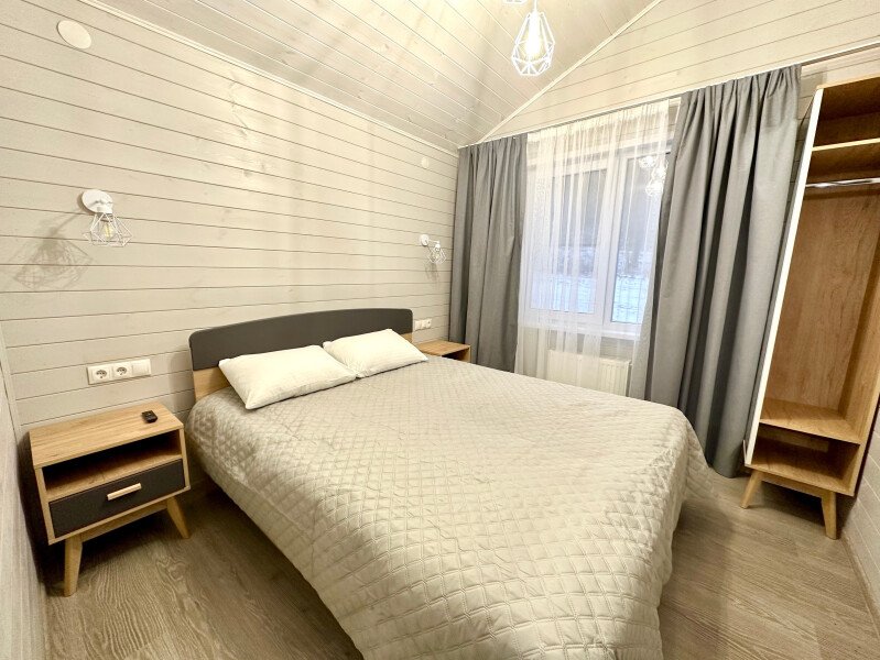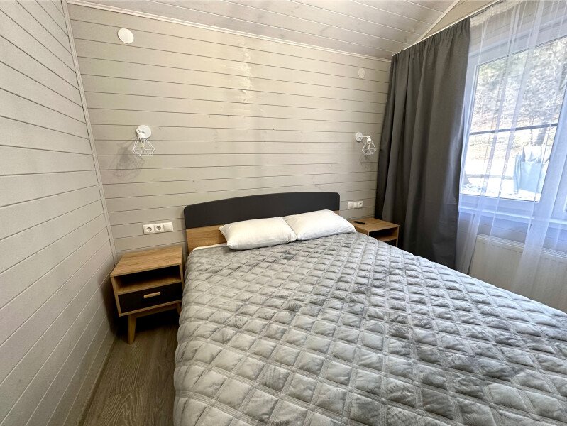 ✓ 2-х спальной кроватью с хорошим ортопедическим матрасом (180х200);