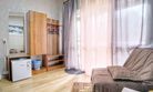 В номере двуспальная кровать, кресло-кровать,телевизор, холодильник, фен, санузел.