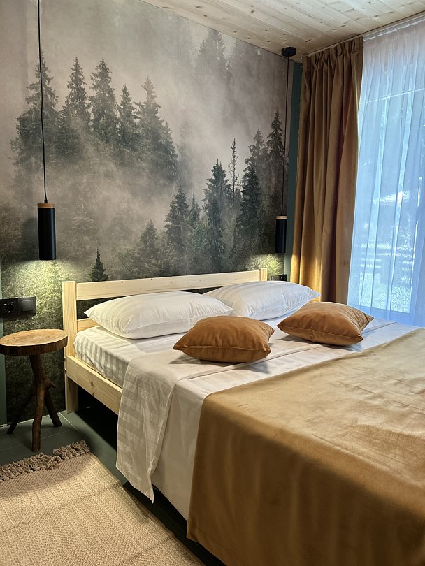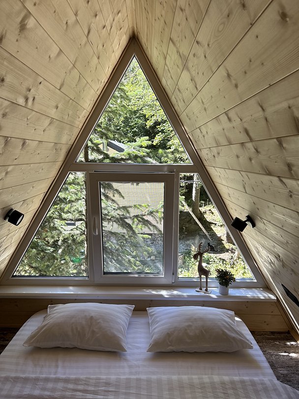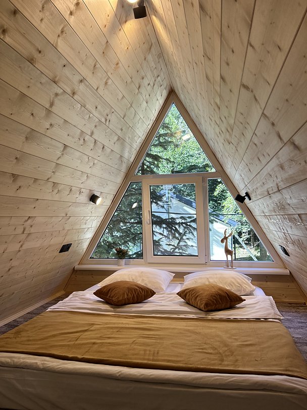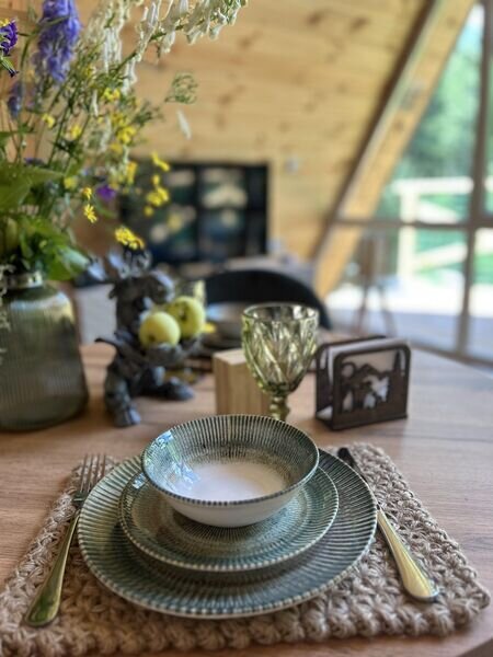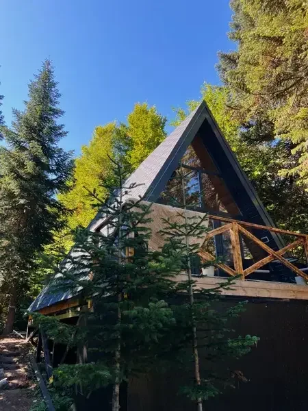 Дом в стиле А-фрейм с закрытой террасой и панорамным окном. Расположен в хвойном лесу. В доме очень уютно и комфортно, теплый пол, горячая вода и туалетная комната. Дом рассчитан на 4 гостей +1 доп.При необходимости предоставляем евро раскладушку. Есть все необходимое для вашего комфортного отдыха. Кухня оснащена микроволновой и индукционной печами, холодильником, кофемашиной, набором кастрюль, сковородой и красивой стильной посудой. Можно прогуляться по лесу или к реке Архыз, покататься на лошадях или поехать на экскурсию на гигантском квадроцикле. Так же на территории есть мангальные зоны оборудованные уютными беседками. В зимнее время мы предоставляем трансфер до горнолыжного пос.Романтик .