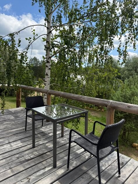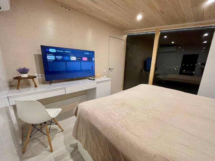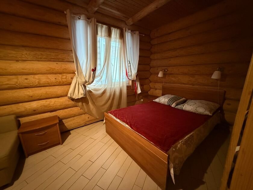 В доме есть все необходимое для отдыха: Smart TV, акустическая система, мангальная зона на свежем воздухе, русская баня на дровах и чан фурако с горячей водой.