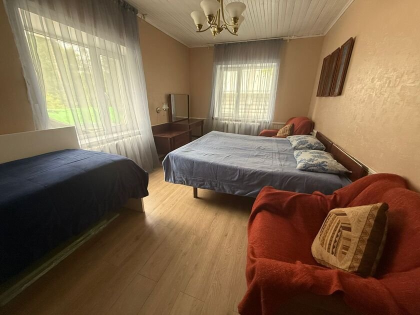 Трехэтажный дом «Вилла» — это просторное и комфортное жилье, идеально подходящее для большой семьи или компании друзей. На первом этаже расположены вместительный зал, финская сауна с бассейном, а также бильярдная комната и санузел. Второй и третий этажи отведены под спальные комнаты, где также находятся залы и санузлы на каждом этаже для удобства.
