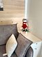 Глэмпинг номер десять средней площади предназначен для комфортного отдыха двух человек. В нем расположена спальня с двухместной кроватью и матрасом марки ASKONA. Также имеется полноценный санузел с сантехникой и душевой кабиной.