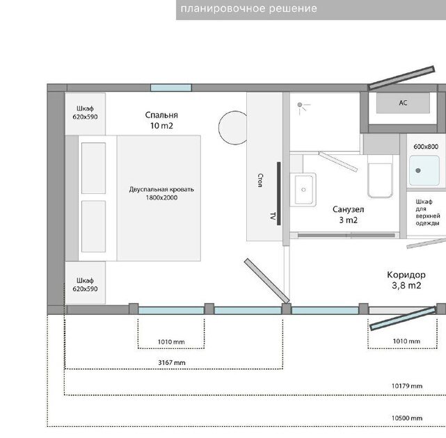 Предусмотрена тамбур-прихожая с открытым шкафом для верхней одежды и обуви, что создает дополнительный уют и удобство во время проживания.